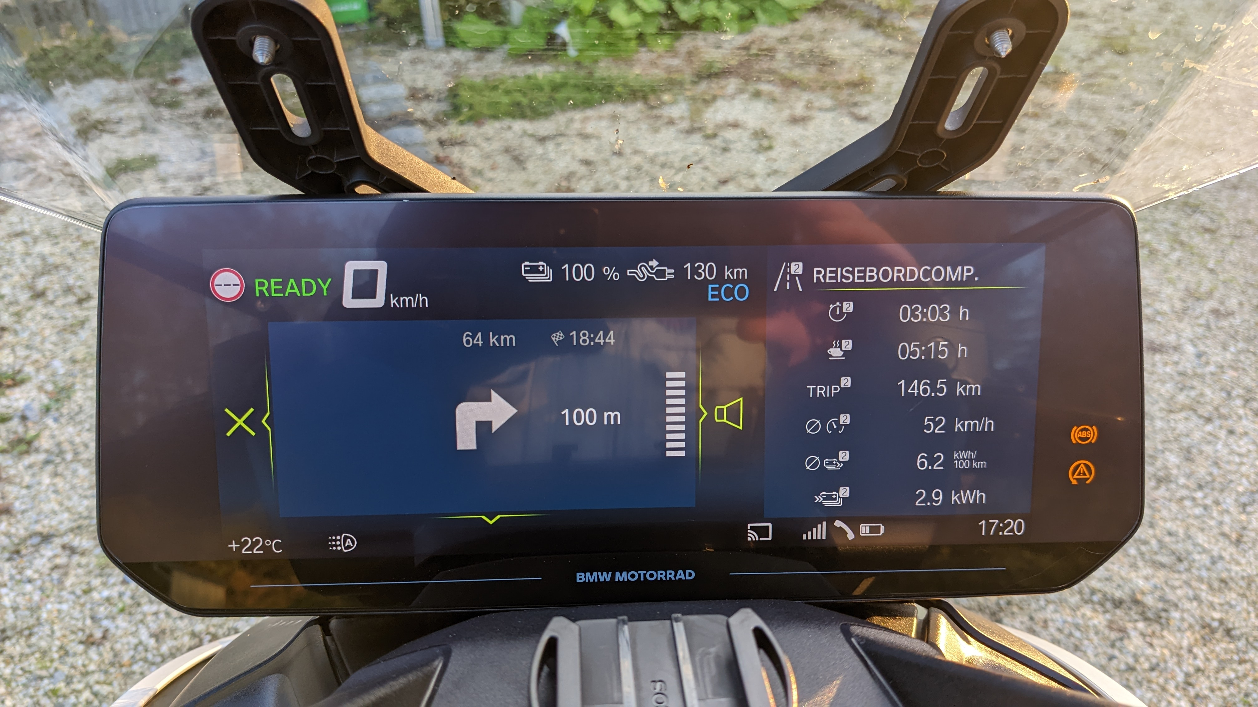 Beim zweiten Ladestopp der heutigen Tour hatte ich mal wieder die Wunschreichweite angezeigt: