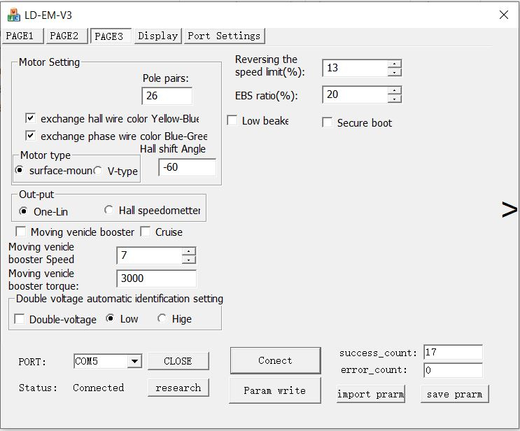 in der VOTOL-Software wird die Rekuperation beim Bremsen über page 3 und die Einstellung EBS-ratio (%) vorgenommen.