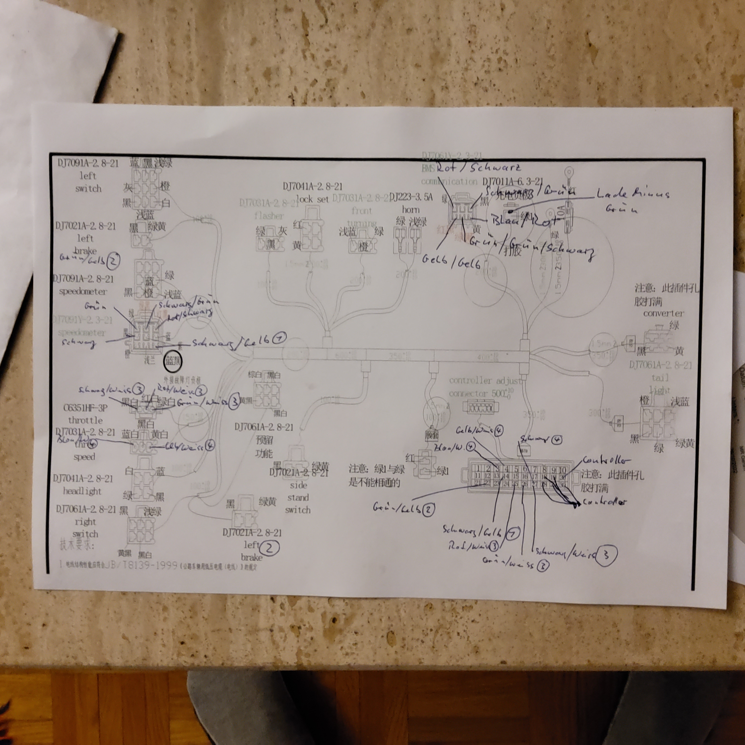 Letztens beim nachhause fahren: die Batterie Anzeige stand plötzlich auf 0% und anstatt der Geschwindigkeit wurde der Fehlercode 11 angezeigt. Nach Rücksprache mit dem Importeur die Diagnose: Wackelkontakt zwischen Controller und Display :? Also die Kiste mal ein bisschen zerlegt und alle Verbindungen mit Kontaktsprey behandelt. Leider ist der Fehler immer noch da :shock: Als nächstes müsste ich wohl die Leitungen durchpiepsen.