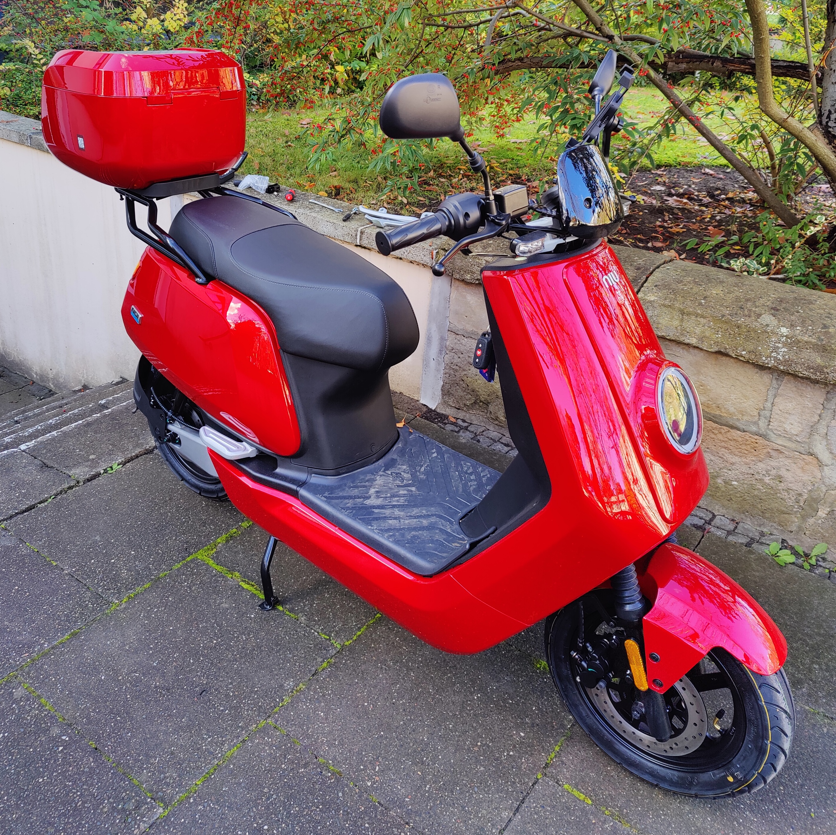 hab breitere Spiegel dran und das große NIU-Topcase drauf.