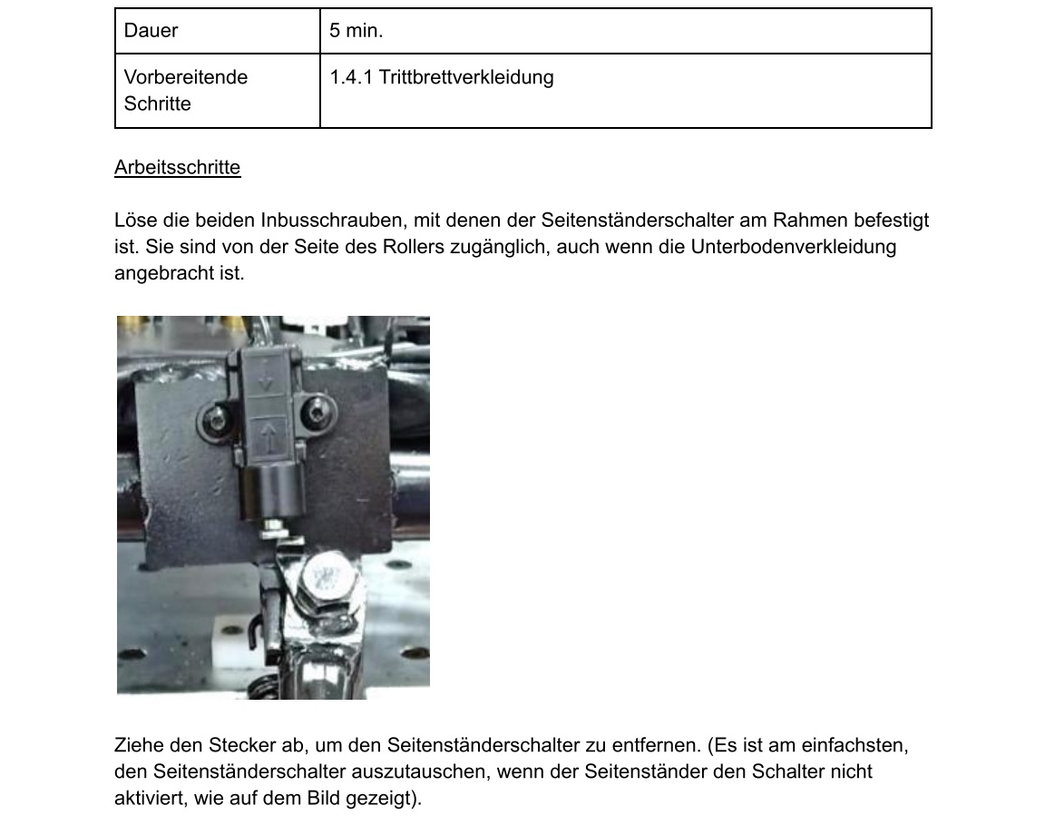 Wenn der Schalter defekt ist, kann man den so recht einfach selber schnell wechseln. Wenn du dort Kabel an und abbaust, dann Akku raus und den Roller ein- und wieder ausschalten. Das soll die Restspannung im 48V Kreis entladen.