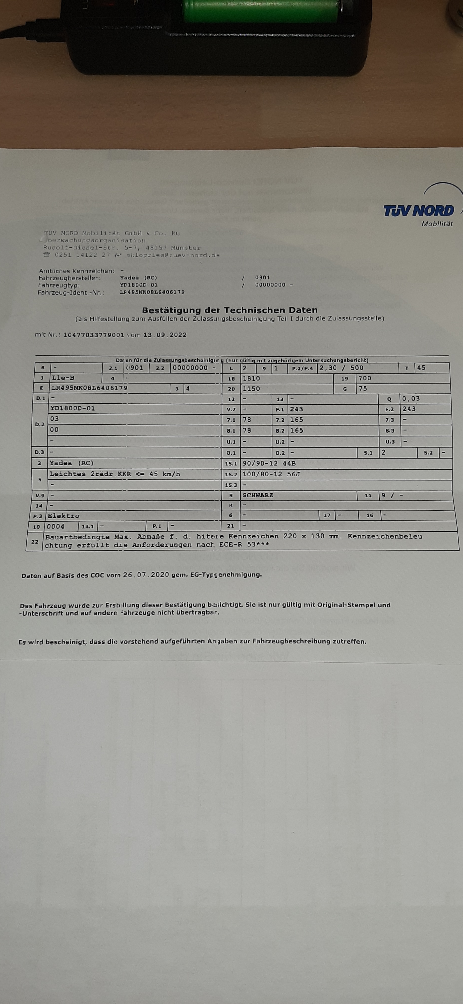 - Roller: Yadea G5 Bj:2022 / Laubfrosch Quad Bj.:2020