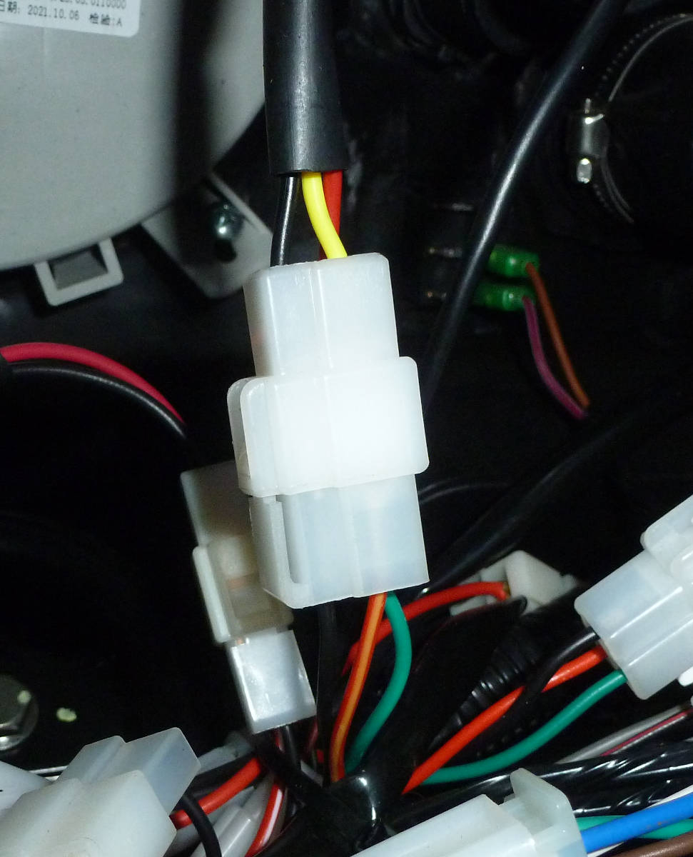 Dann habe ich den Spannungswandler wieder angeschlossen wie er war, nur die abgehende 12V-Leitung habe ich aus dem Stecker entfernt. Am jetzt offenen gelben Anschluss hatte ich wieder beliebige, sich ständig ändernde Spannungen zwischen 2V und 9V. Dann habe ich die 72V-Leitung vom roten auf den gelben Anschluss umgeklemmt. Beim Einschalten der Zündung hat es sofort geknallt und die Sicherung ist durchgebrannt, die in deinem Schaltplan rechts unter dem Hauptschalter eingezeichnet ist. Bei mir war da eine 15A-Sicherung drin. Also habe ich die 72V-Leitung wieder auf den roten Anschluss des Wandlers angeschlossen und eine neue Sicherung eingesetzt. Jetzt ist alles wieder wie vorher. Am Spannungswandler hat sich dadurch nichts verändert. Aber kaputt ist er wohl trotzdem.