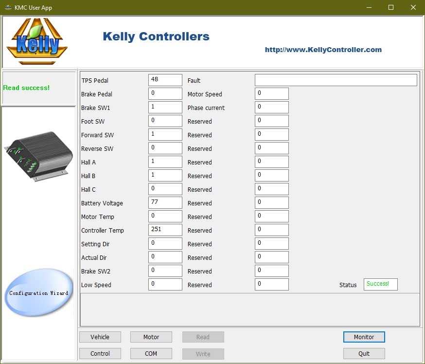 habe ein Problem mit der Software eines Kelly Controllers .