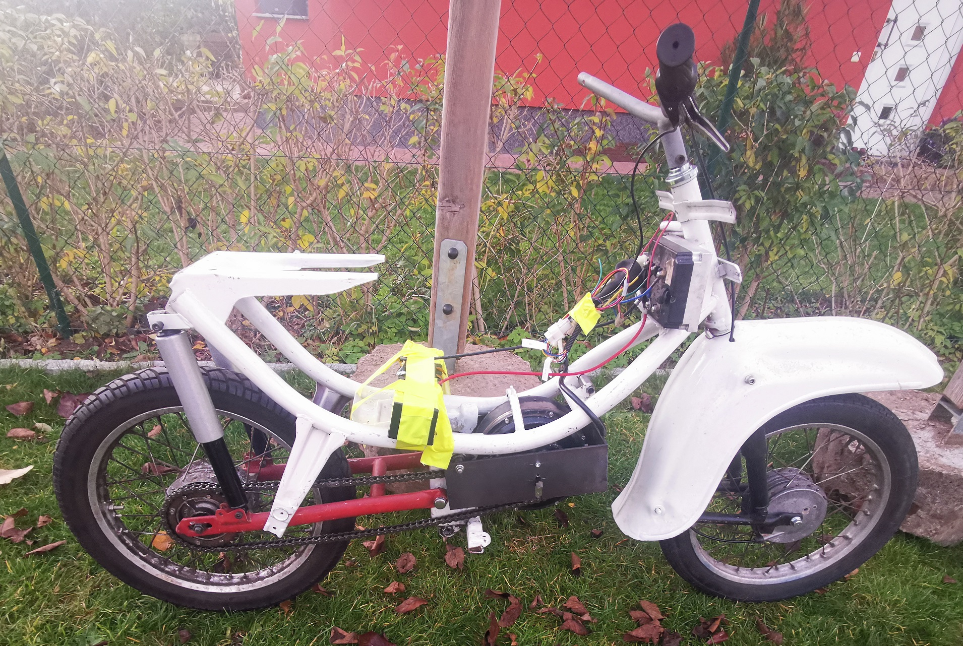 Was die technische Umsetzung betrifft: ich würde nicht mit 2 Motoren arbeiten. Es gibt Motoren mit 4 kW, da reicht ein einziger Motor. Der elektrische und mechanische Aufwand verringert sich dadurch erheblich. Aber egal ob 2 x 2 oder 1 x 4 kW: für derartige Leistungen benötigt man ordentlich Akku-Kapazität. Die geht ins Geld. Zusammen mit den Kosten für die anderen Teile (z. B. Motor, Controller etc.) und vor allem für das Gutachten dürfte da ein Sümmchen zusammenkommen, von dem man sich locker ein fertiges Elektro-Motorrad kaufen könnte.
