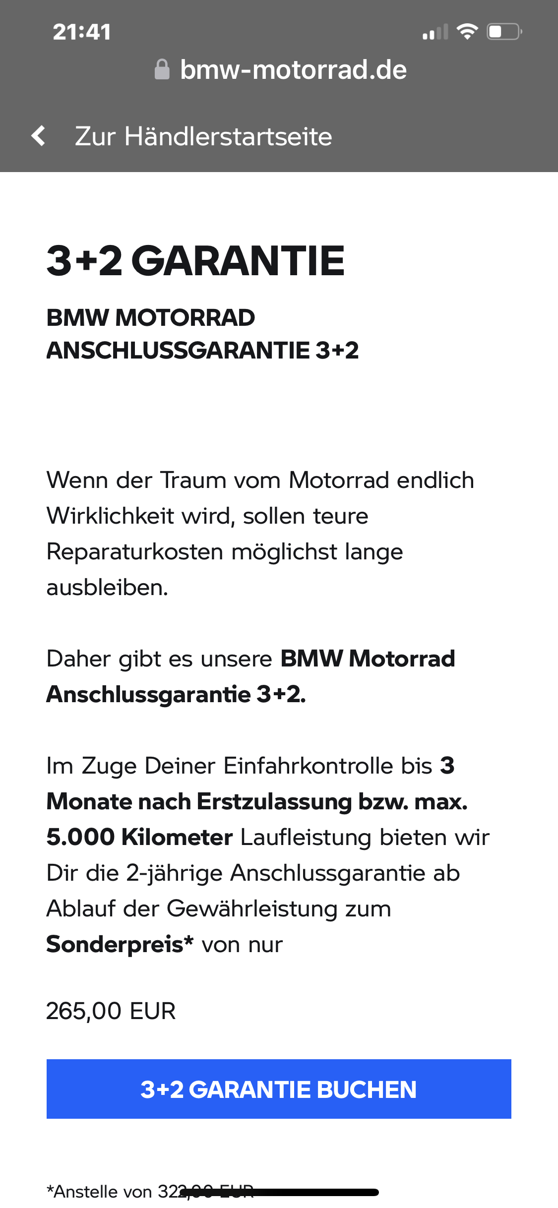Ich bin auch gewillt die Original-BMW-Garantieverlängerung abzuschließen. Wir haben ja schon den ein oder anderen Preis gehört. Ich fände es sinnvoll, mal die Preise zu vergleichen. Das Angebot der NL BMW Motorrad HH für 26x€ für 2 Jahre Verlängerung aus dem Sommer 2022: ist das noch aktuell? Weiß das jemand? Weil der beste Preis vor Ort bei mir liegt aktuell bei 299€.