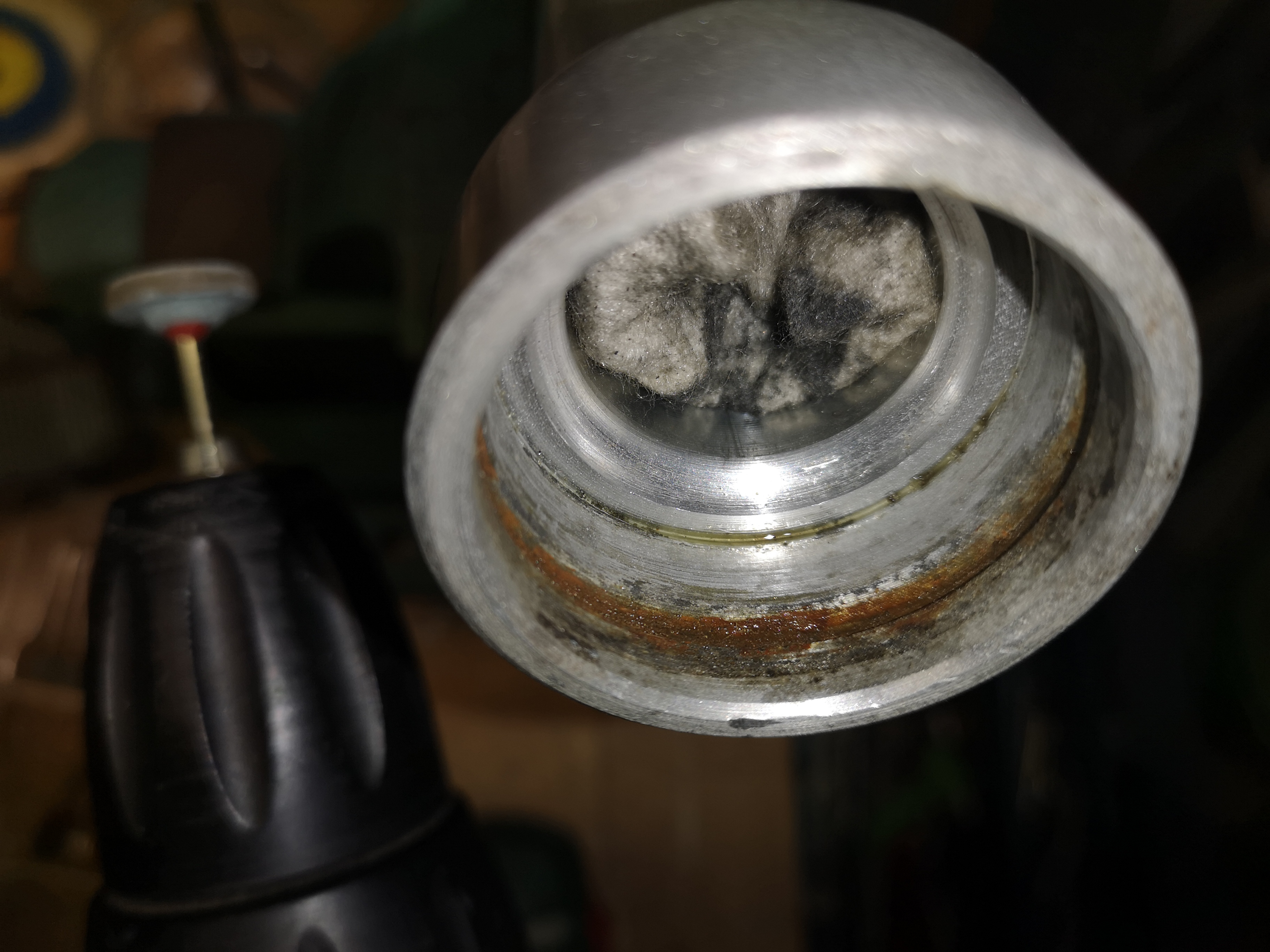 Den Simmerring musste ich allerdings hier auch vorsichtig mit einer Verlängerung heraushebeln (altes T-Shirt auf den Rand der Öffnung gelegt, damit es keine Macken gibt).