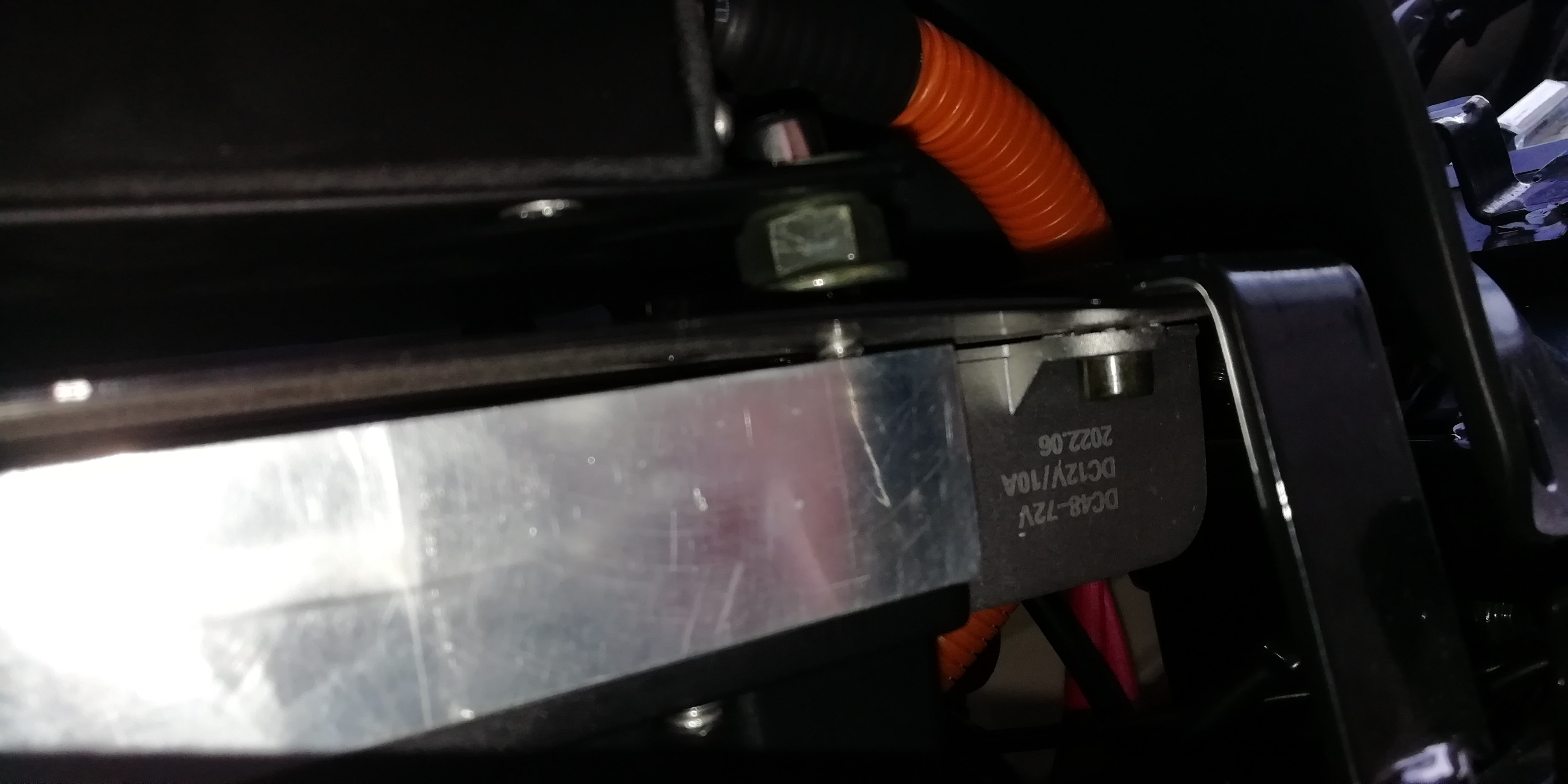 Vom Ladegerät geht ein schwarzes Kabel direkt an den Fast Charging vom Akku. Das Orange Kabel vom Lader geht auf der anderen Seite runter, sah aus als geht es auf einen Stecker und von dort dann zum Typ 2 und vielleicht auch noch wo anders hin, konnte man aber von dort nicht besser erkennen.