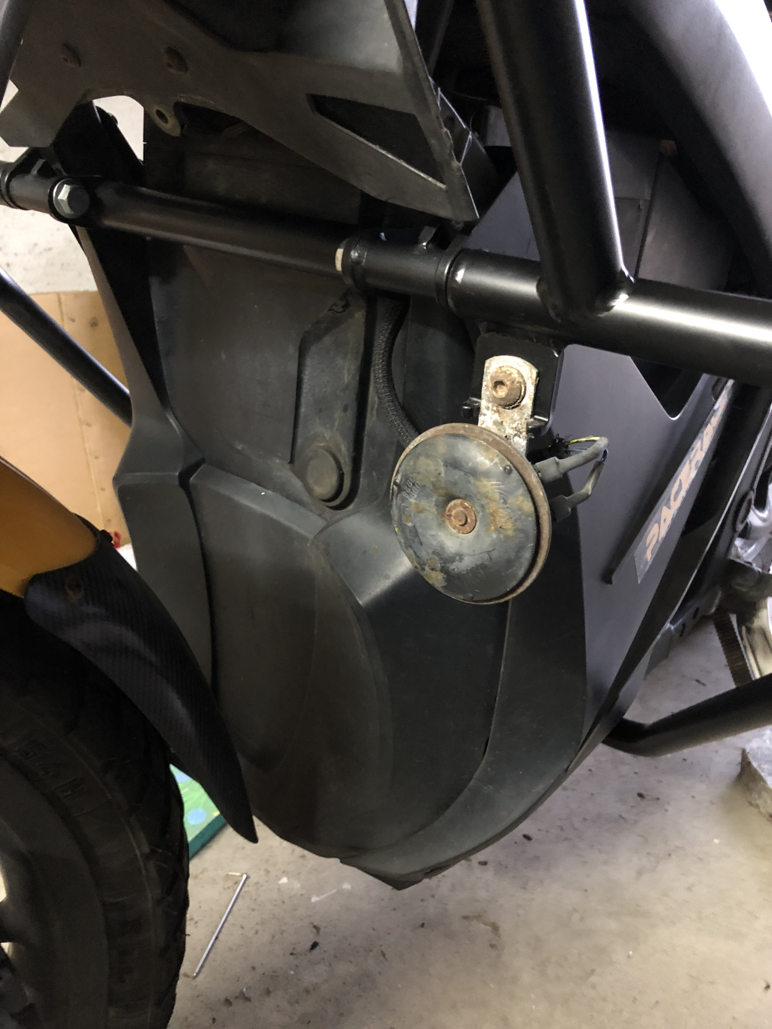Links vorn ist extra ein Blechhalter fürs Anbringen der Hupe angeschweißt, sieht dann verbaut so aus: .