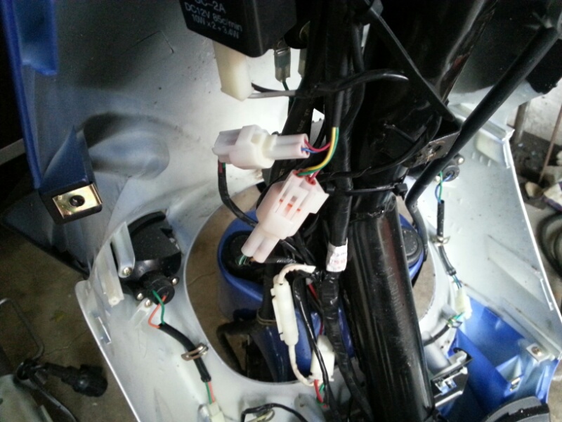 2 Dreipolige Steckverbinder für Fahrstufenschalter (Hintergrund) und Gasgriff (Vordergrund)