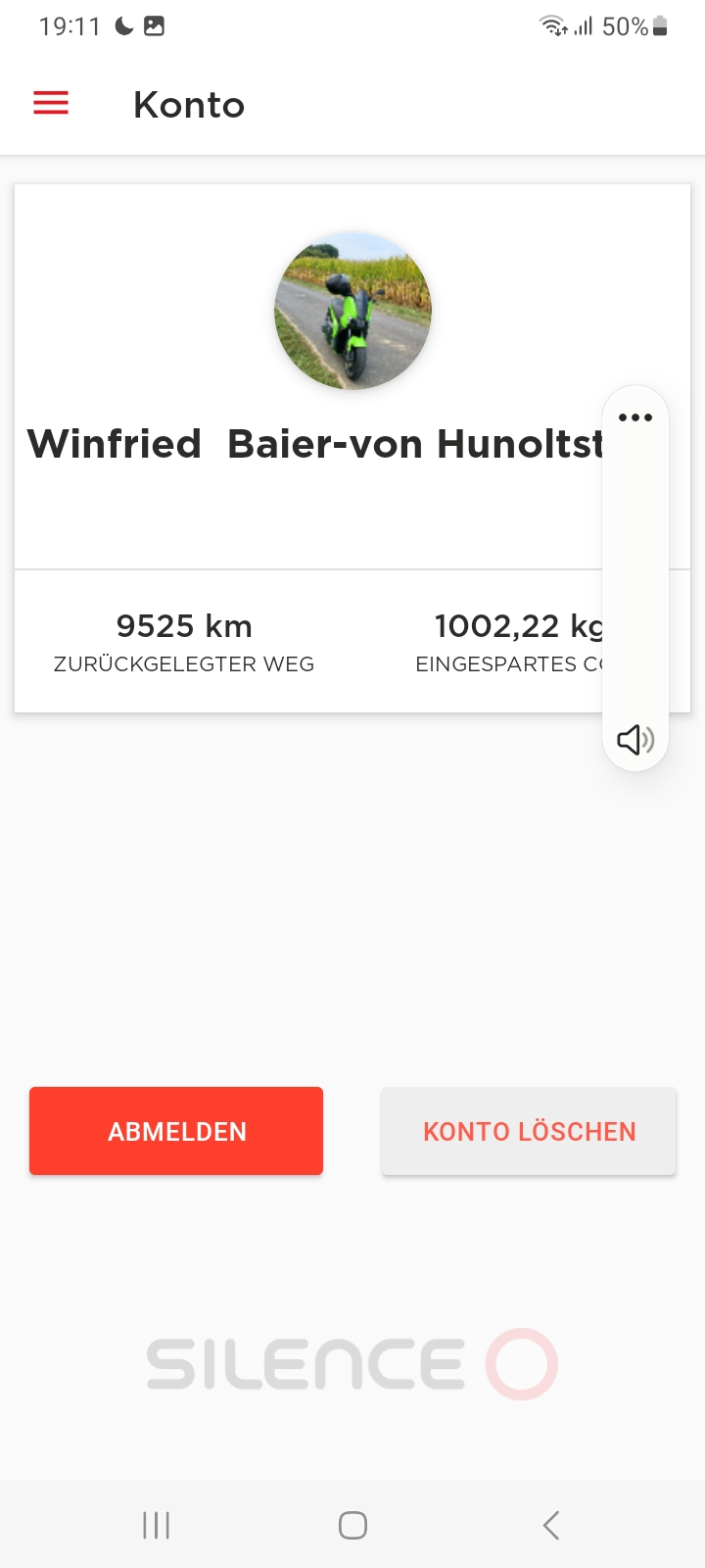 Solarstrom vom Dach erzeugt kein CO2. Das Progi geht von einem durchschnittlichen Benzinverbrauch von 4,22 Litern/100 km aus, mit dem Motorrad brauch ich 5,2, mit dem Auto 6,5. Da der Silence ja nur mit 600 Watt läd, schafft ich es fast immer, ihn in den Mittagspausen, an freien Nachmittagen und am Wochenende klimaneutral zu laden.