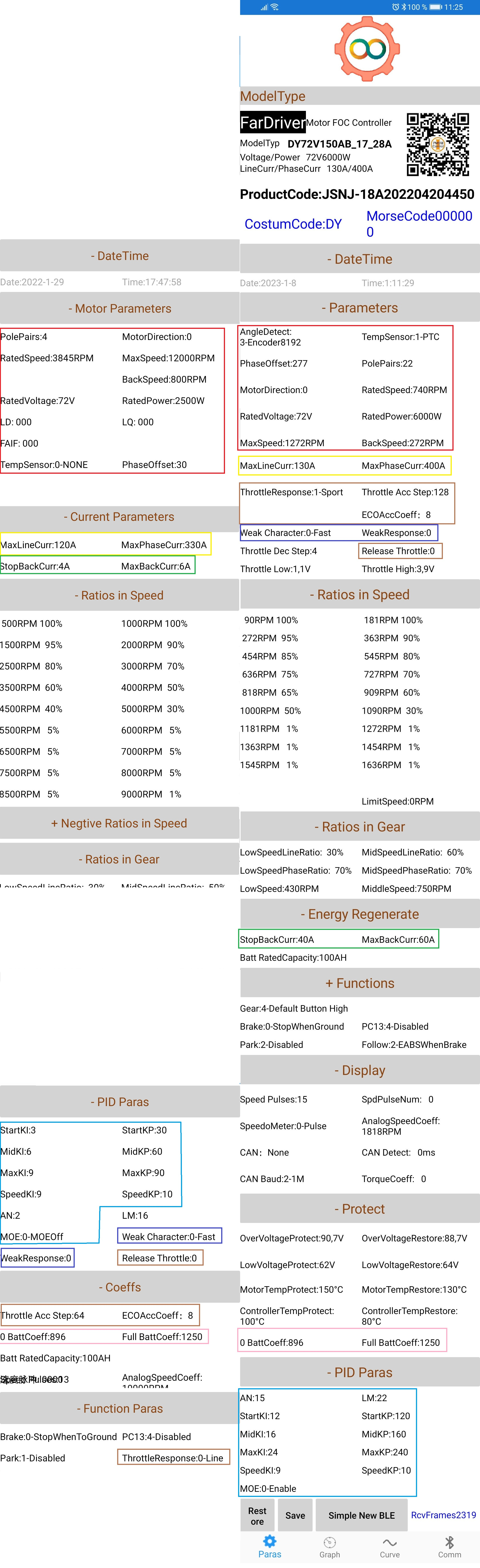 your explanation is great, so I made a comparison of your (QS motor) and my (AMR) controller settings and want to ask you to look at it, maybe you will have some advice for me what to change. I changed only ThrottleResponse + activated and set Regeneration, everything else is factory settings. Thank you.