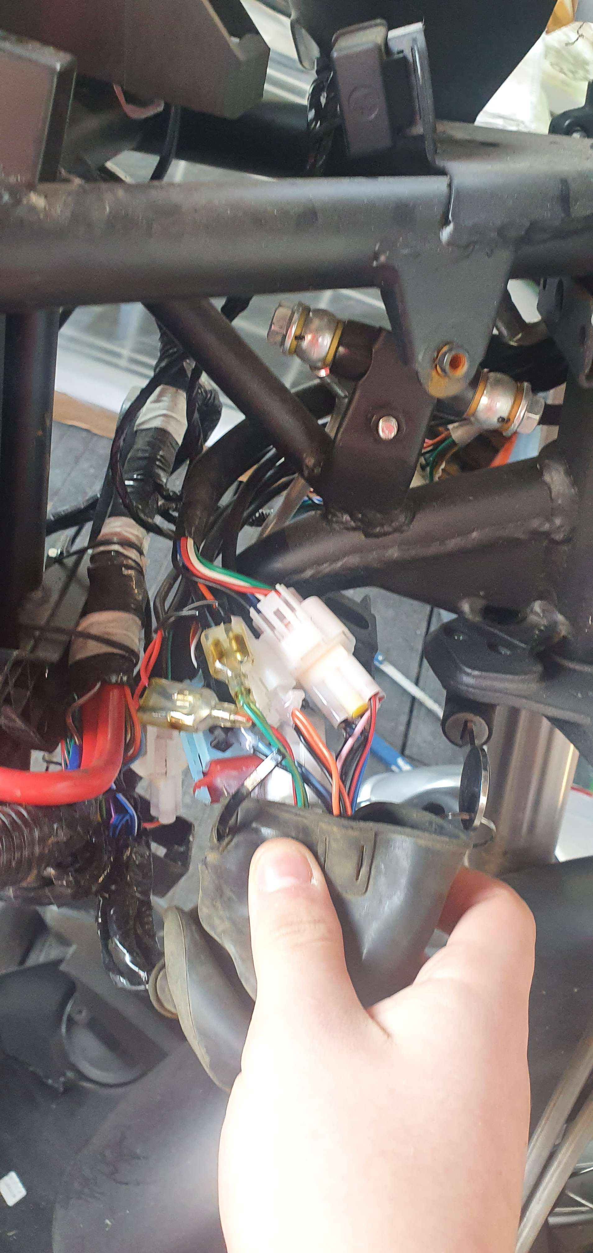 Ich wollte ein neuen wandler bestellen woraufhin mein Vater sagte ich soll erst mal mit einer auto batterie 12V dem Kabel Strom geben ich sollte trotzdem den Akku anschließen um Strom zum starten zu geben ich hatte die ganze zeit ein mieses gefühl aber gesagt getan kurzschluss Sicherung ist nicht raus mototrrad geht jetzt nicht mehr an aber alles hat Strom sind jetzt alle Geräte im arsch oder wie schaut aus
