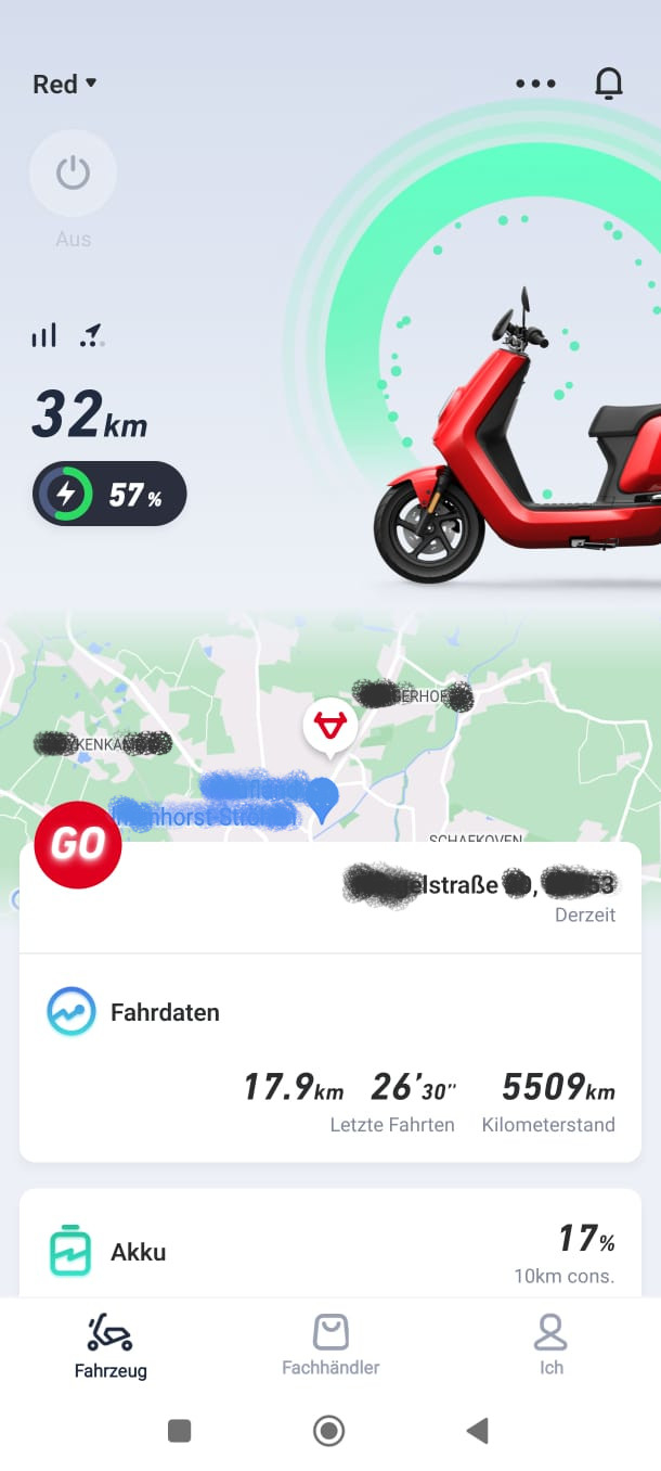 ... was seltsam ist, der Roller ist laut App über Mobilfunk online...