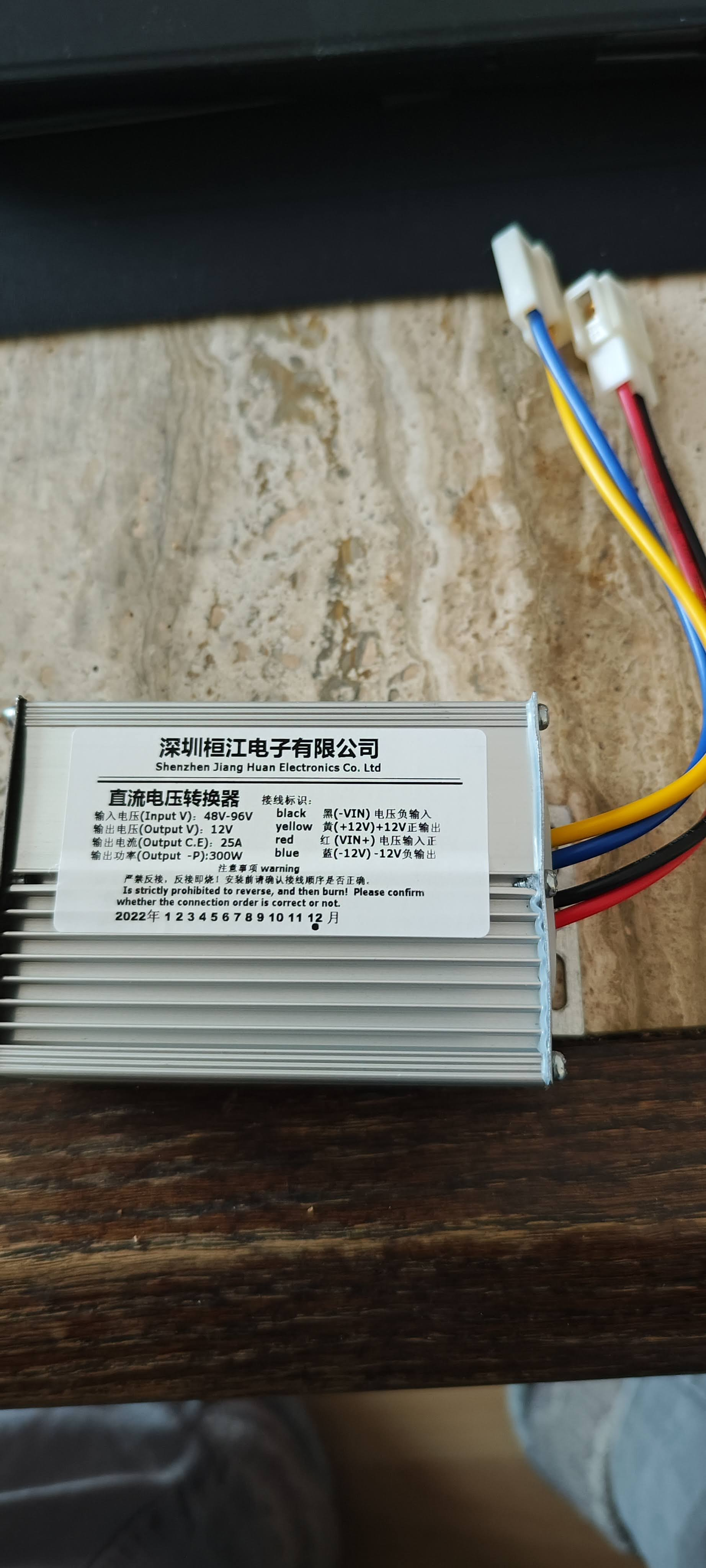 https://www.nova-motors.de/spannungswan ... ohne-kabel Das grüne Kabel geht auf das Zündschloß (48 bis 72V) und schaltet den DC DC EIN. Das rote Kabel mit der Batteriespannung geht auf IN. Das schwarze Kabel (Masse) geht auf GRD (ground) und das gelbe Kabel = 12V auf OUT.