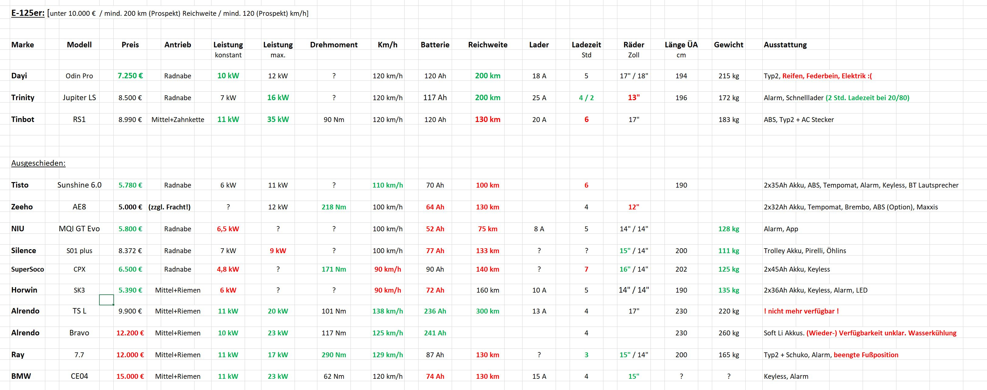 Hallo Didi, danke und ja, die L Version hätte alle Anforderungen erfüllt, teils sogar übertroffen (Akku und daraus resultierende Reichweite) aber die L wurde zurückgezogen und auf die von Dir verlinkte Bravo warten die Kunden verschiedener Händler seit mind. einem Jahr, wie im Kommentar Verlauf der von Dir verlinkten Trittbretthelden Seite auch ersichtlich.