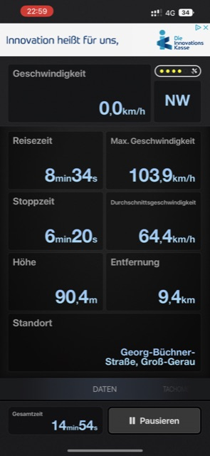 Gerade high speed gecheckt:laut Tacho 114 kmh mit der App gemessen 105,8 kmh. Akku ca. 80 Prozent voll