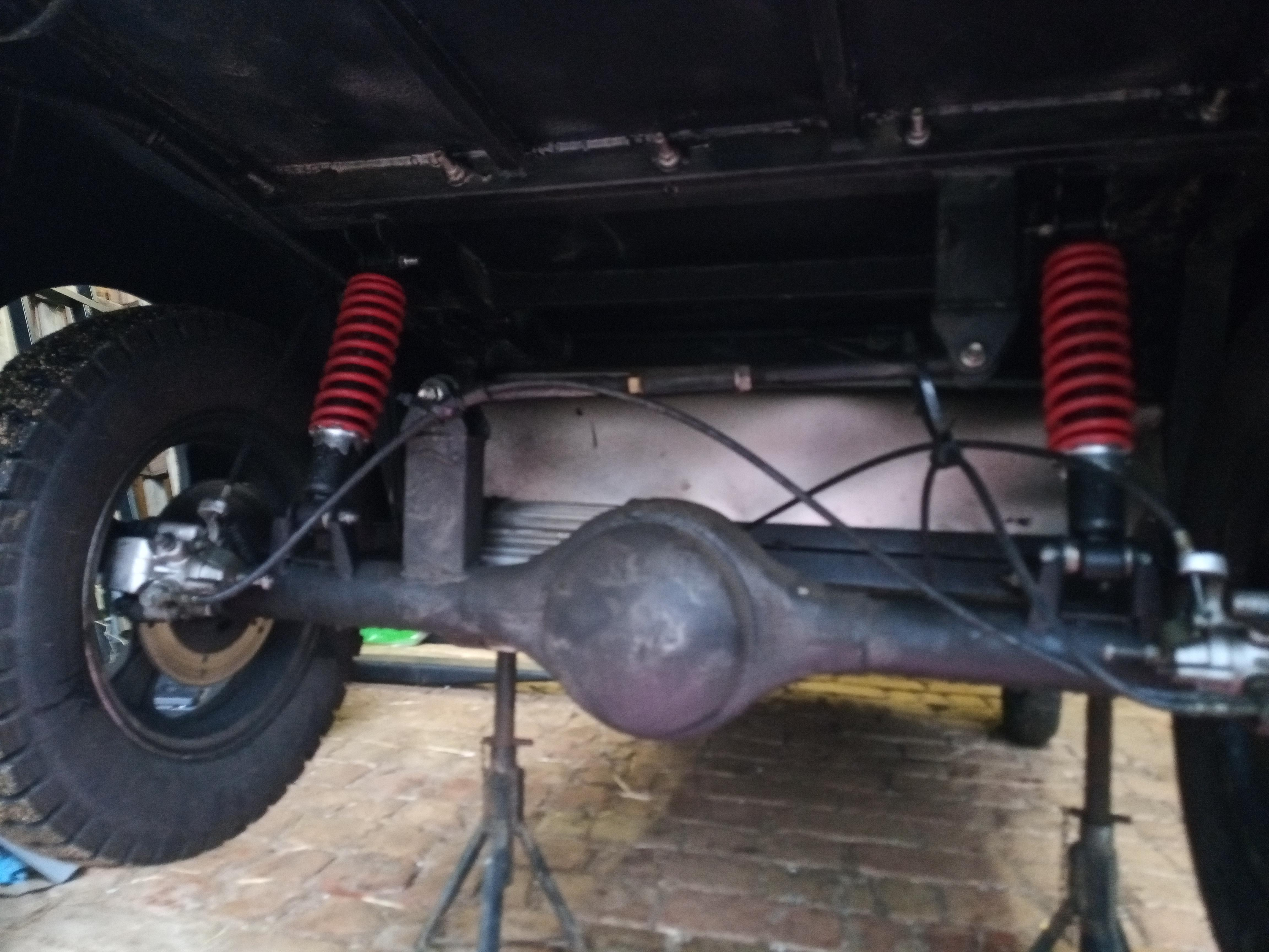 Hier verändert sich beim Einfedern die Spur stark auf Nachspur. Die Konstruktion und Anordnung der Spurstangen zu den Dreieckslenkern ist das Problem. Lässt sich leider nicht so ohne weiteres ändern. Man kann das etwas verbessern, indem man die Spur bei Belastung (Fahrergewicht) einstellt.