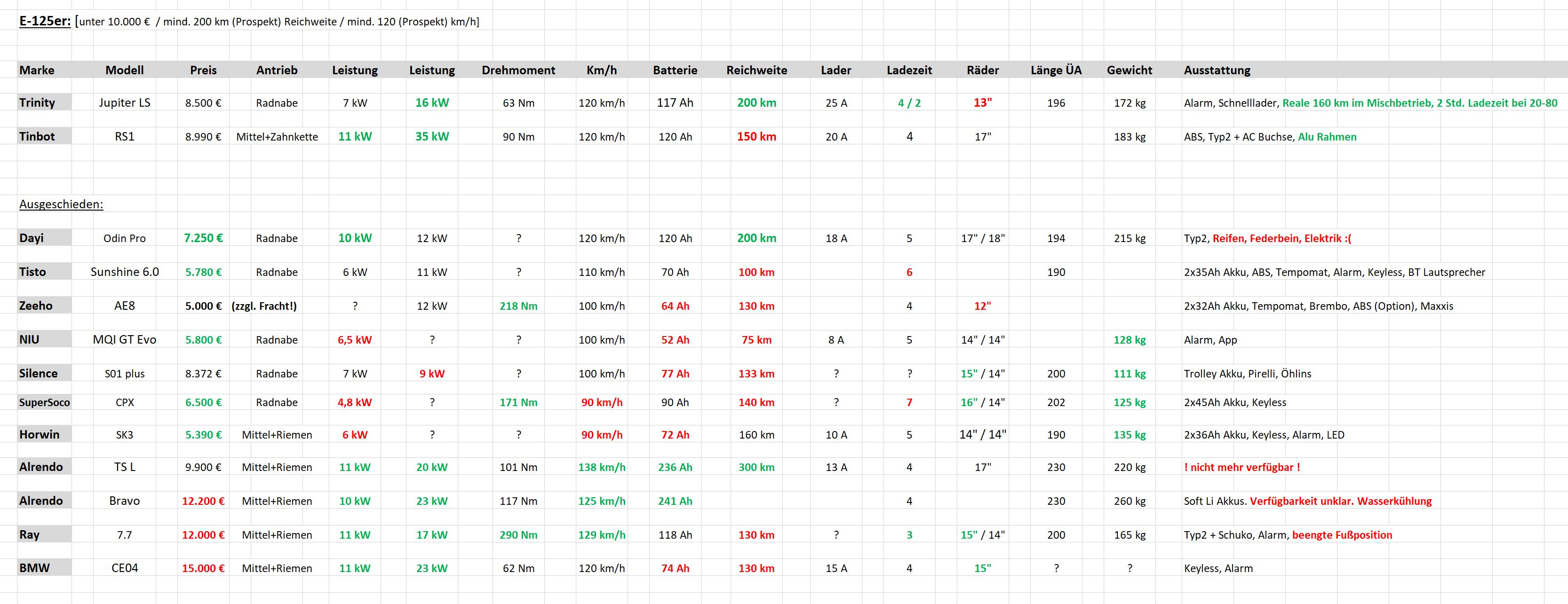 Der BMW CE04 war zwischendurch in der Verlosung, weil der echt eine Klasse für sich zu sein scheint, aber das wäre eher ein Spielzeug für mich, weniger für meine Freundin - ist also wieder raus. ;-)