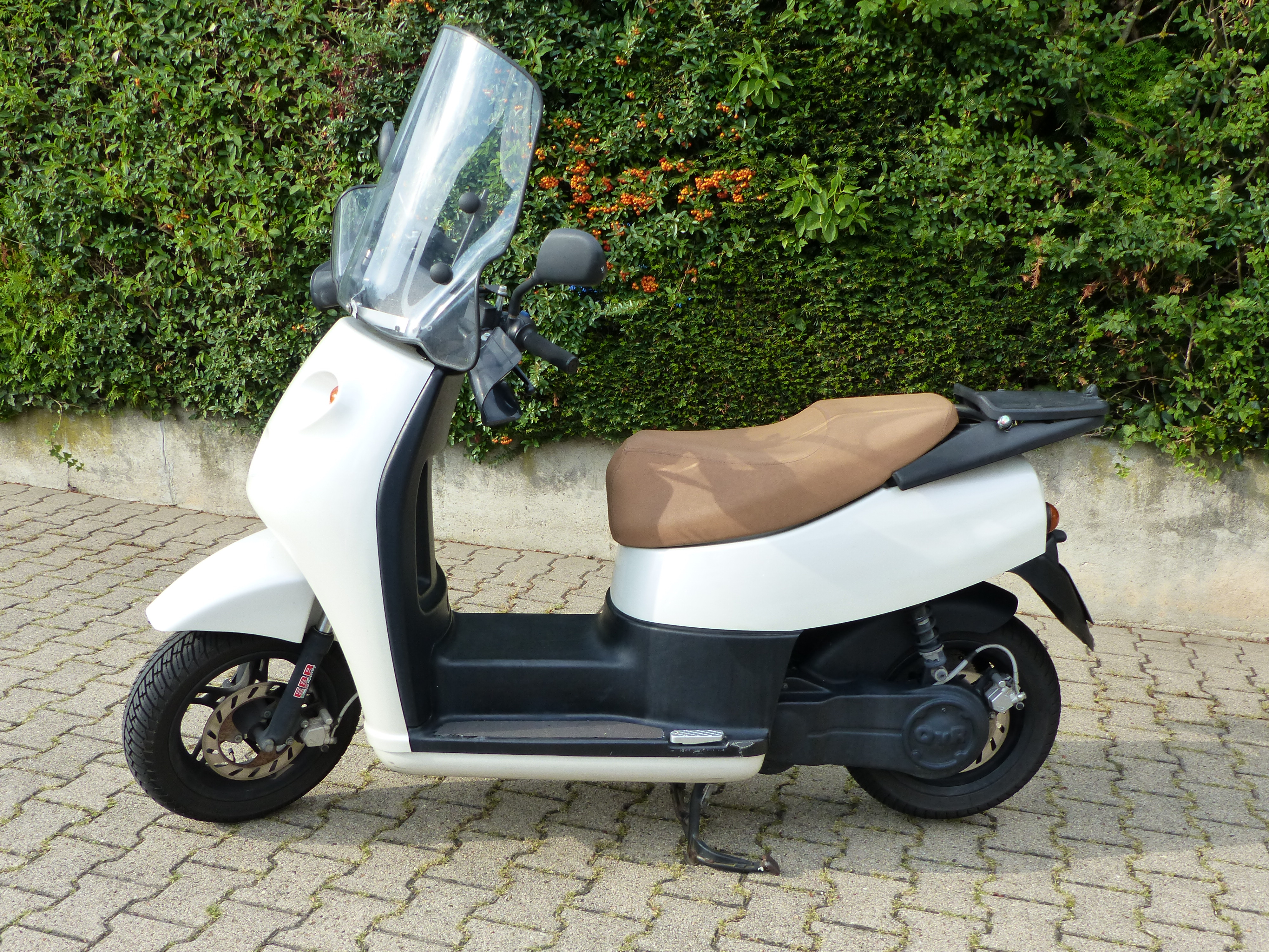 Ich mache gerade meine B196-Führerscheinerweiterung und fahre einen 45ccm E-Scooter, den Kumpan 1954 RI. Dieser hat eine Motorleistung von bis zu 4 kW, bei einer Zuladung von ca. 200 kg kann aber keine grosse Steigungen bewältigen.