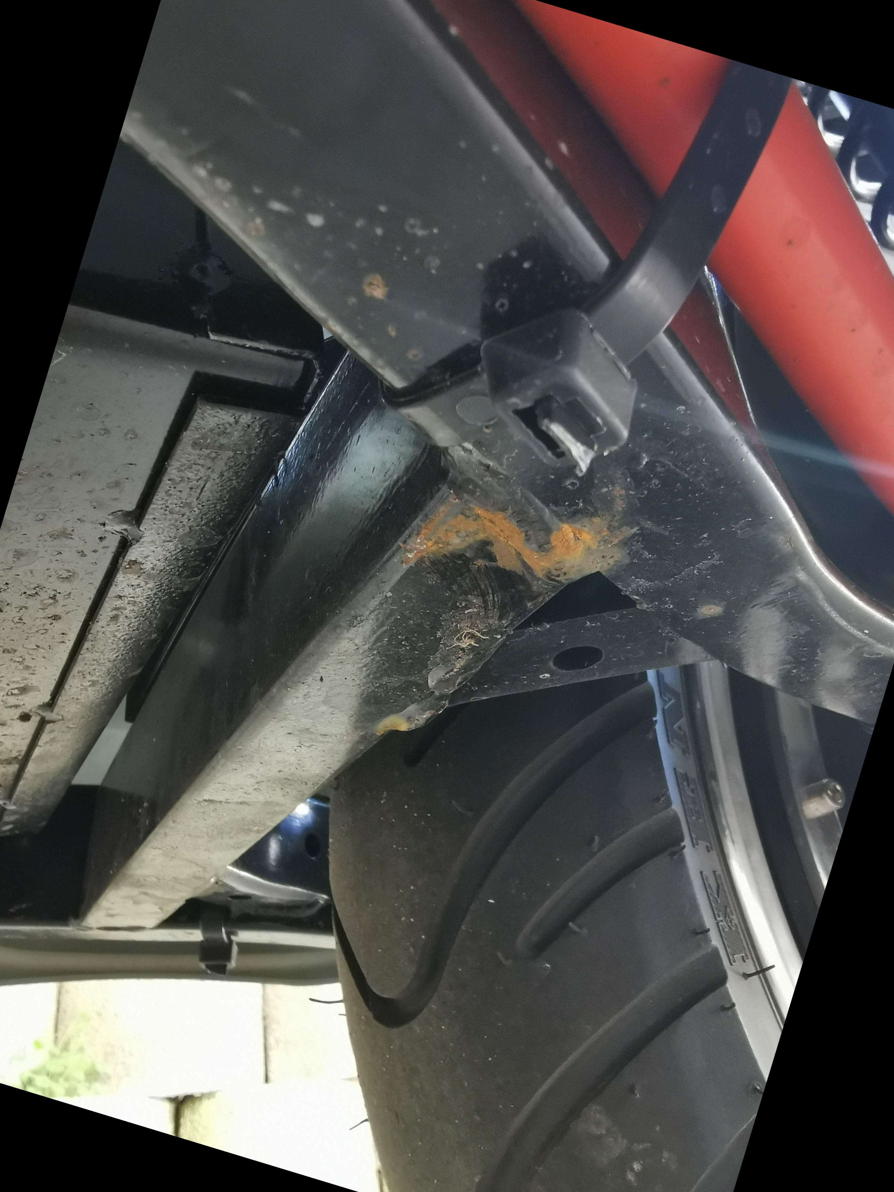Am schlimmsten war der Bereich um den Ständer , die Stoßdämpfer und die Schwinge. Letzteres hatte ich mal gestrahlt und gepulvert.