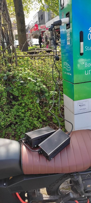Jetzt bin ich zu Fuß zu einer Ladesäule und habe nur das Ladegerät ohne Akku angesteckt.