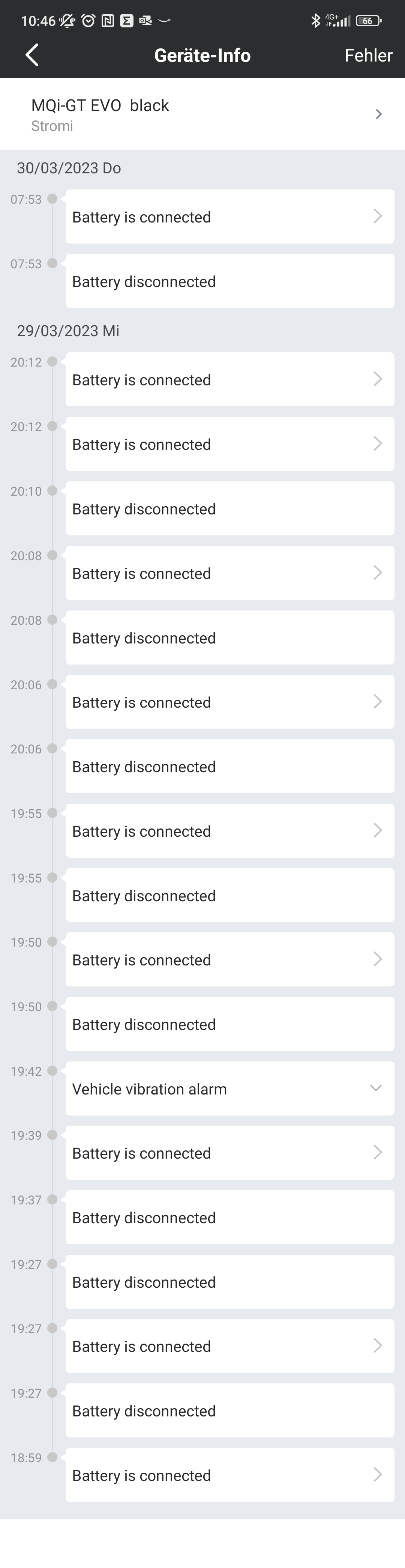 GT EVO: Fehlermeldung via App: Battery (dis)connected