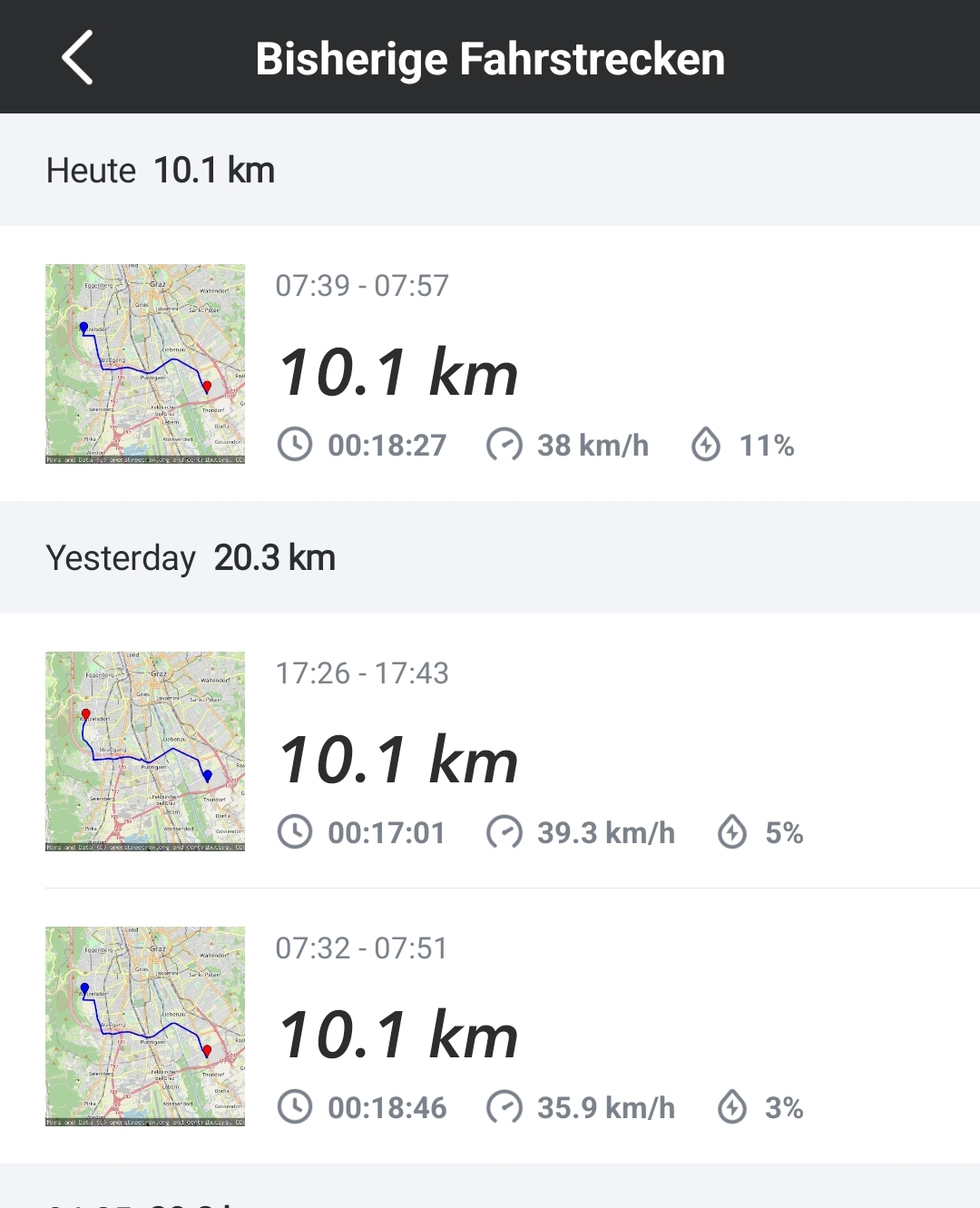 Unrealistisch hohe Verbrauchswerte von über 60Wh/km auf Strecken wo normalerweise um die 40 Wh/km gebraucht werden.