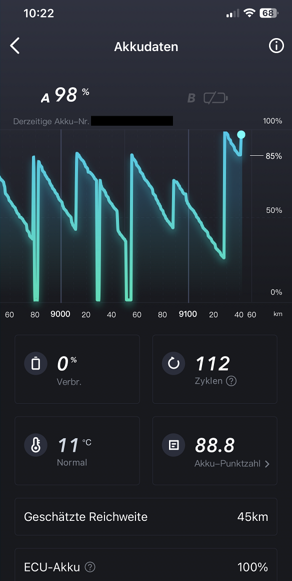 Es scheint auch nicht unbedingt an der APP zu liegen, denn die LED Anzeige am Akku und die Anzeige im Display passen ziemlich genau zu dem, was die App anzeigt.