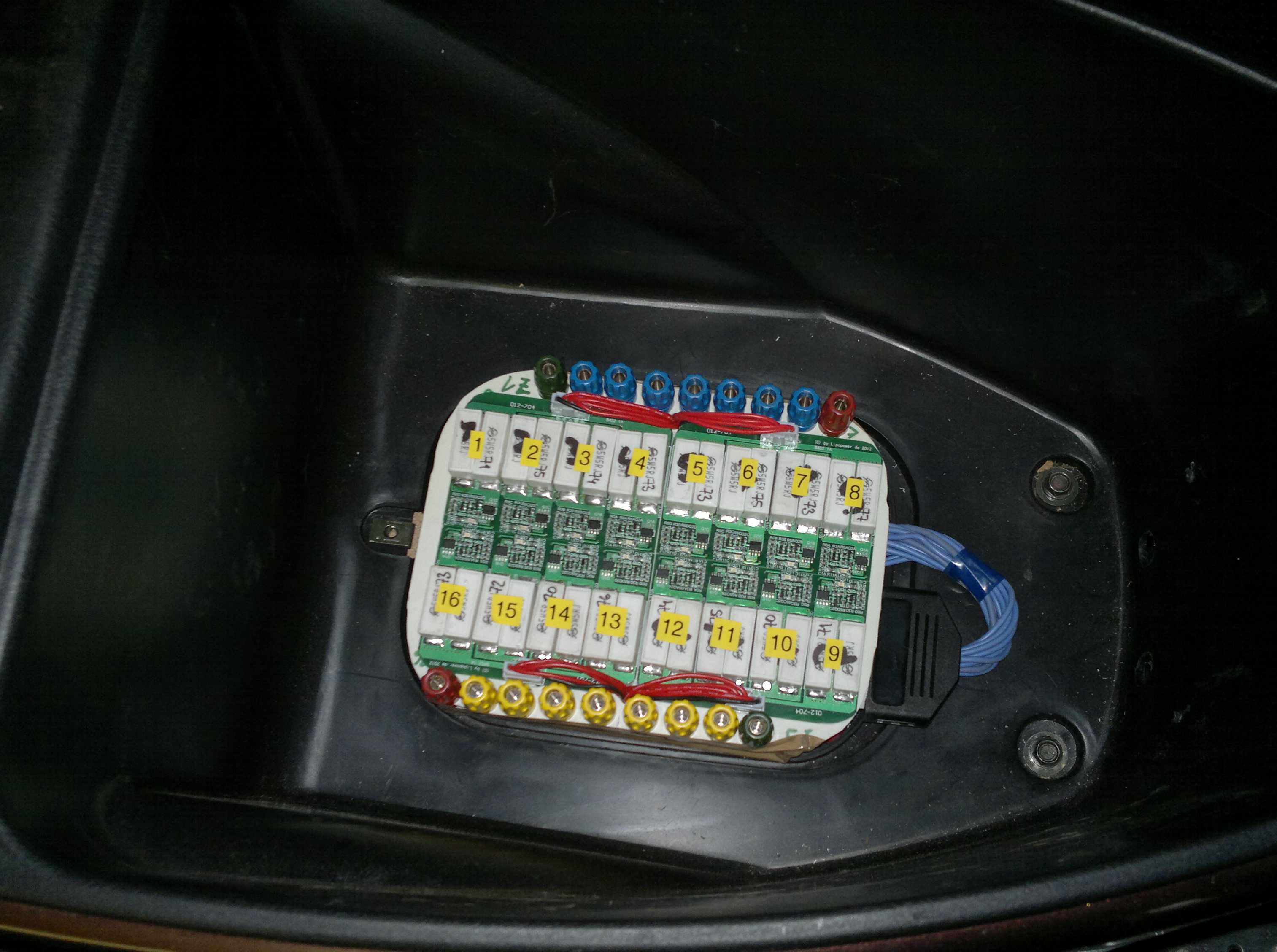 Die Ehrfahrungen hier mit LIFEPO und Ladetechnik haben mich veranlasst mal dem Roller unter das Chinaplaste Kleid zu schauen.