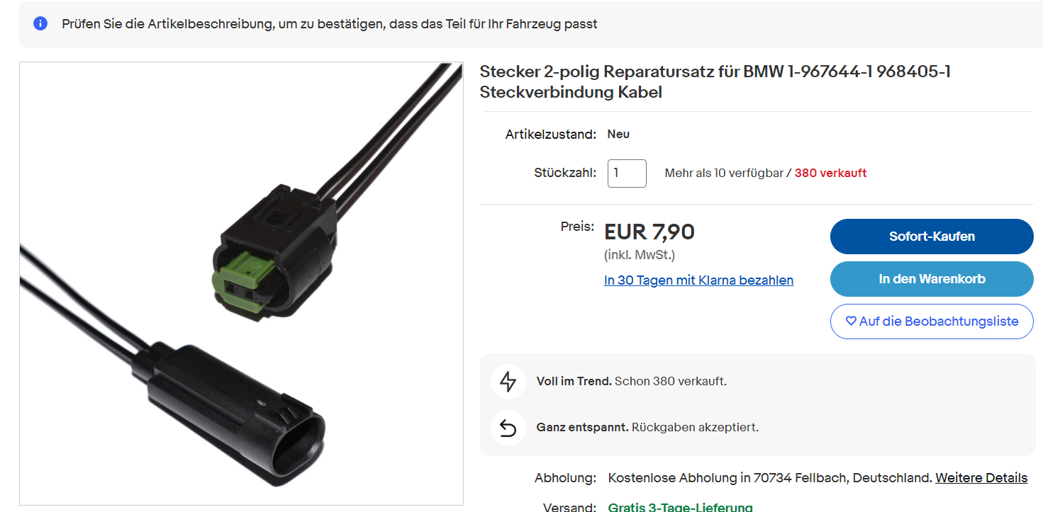 Bei BMW gibt es diesen Stecker leider nicht einzeln sondern nur komplett mit der Kennzeichenleuchte (63267924546).