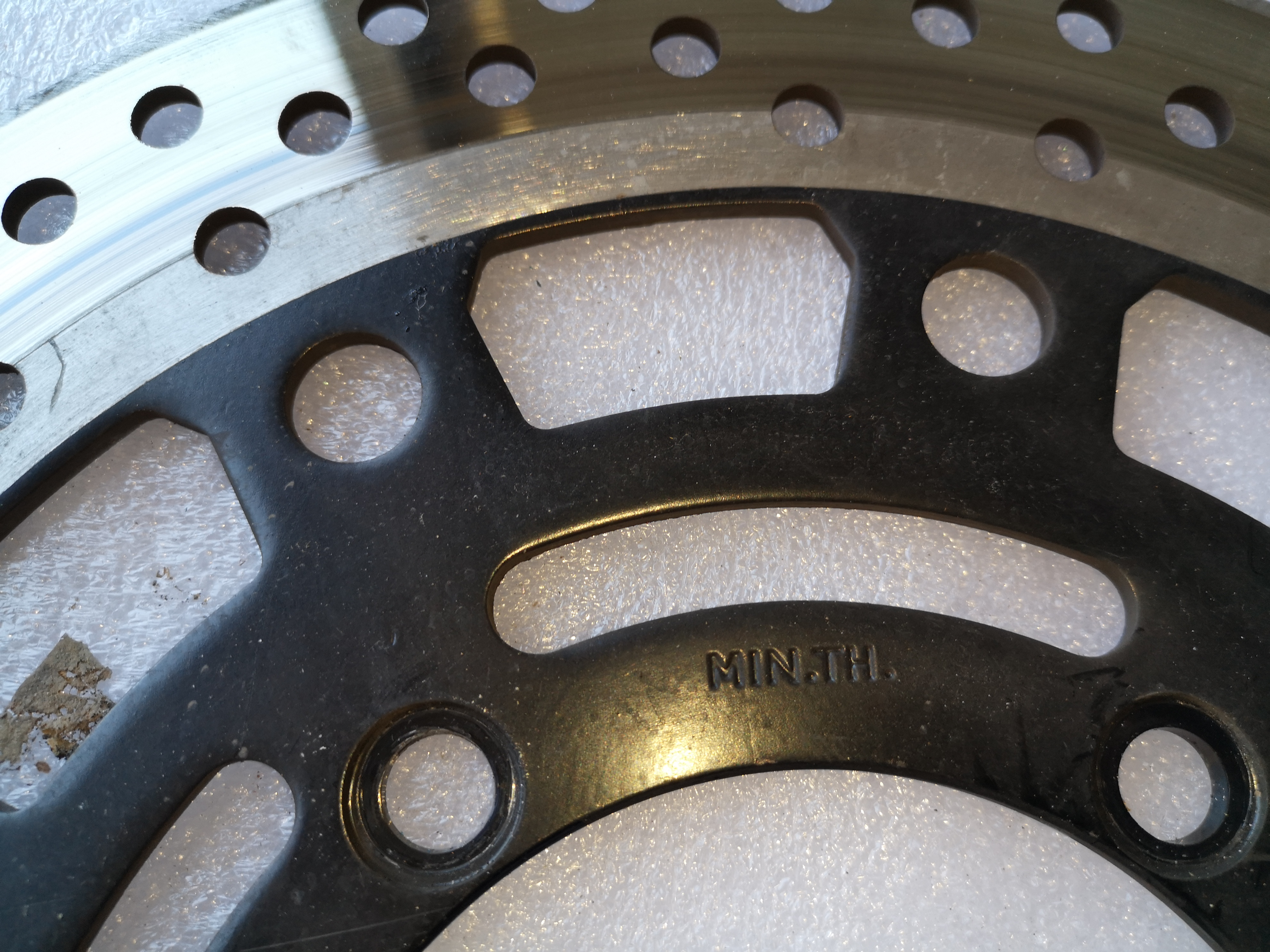 Hier nun, wie versprochen, die Bilder von meinen original-Bremsscheiben, welche ich letztes Jahr gewechselt habe nachdem die Bremsen immer gequietscht haben und auch leicht unrund liefen.