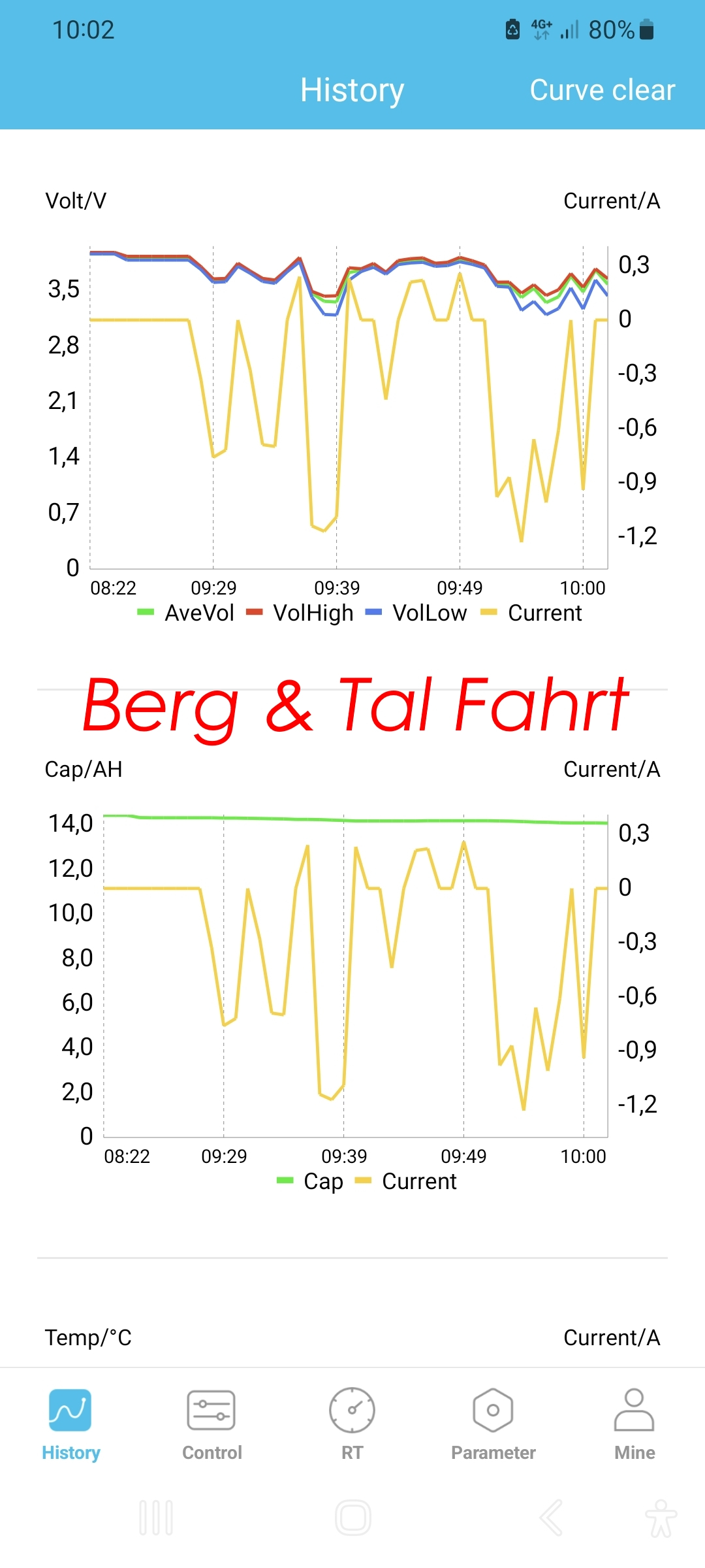 Insgesamt sollte man bei Akkus den Ladezustand noch nicht so genau nehmen. Es ist extrem schwer den zuverlässig zu ermitterln. Glaub nicht, dass die Chinesen da einen guten Algorithmus implementiert haben. Hab da bei JBD eh schon meine Probleme.