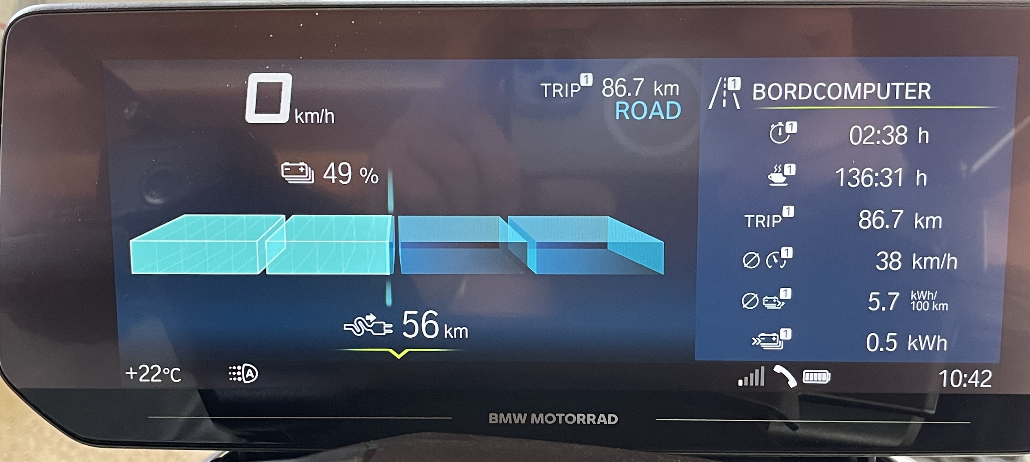 Der Roller wurde bei 49% SOC angesteckt - der Akku war warm - die Ladeleistung hat hier 6,7kW betragen - die Lüfter am Ladegerät waren deutlich hörbar.