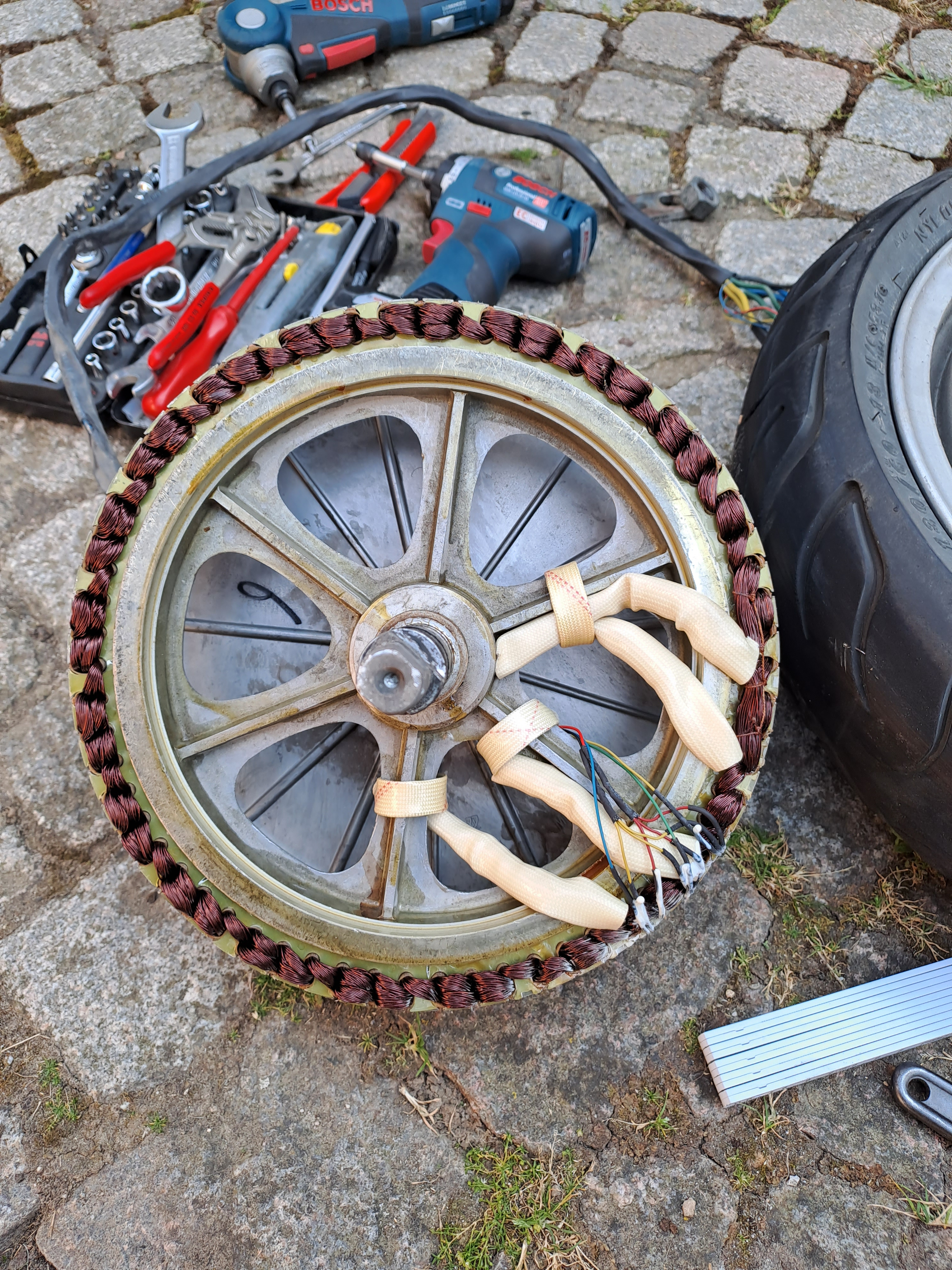 Ich werde wohl erst den Versuch starten dem nominal schwächeren QS-Motor neue Phasenleitubgen zu verpassen. Das sollte doch machbar sein