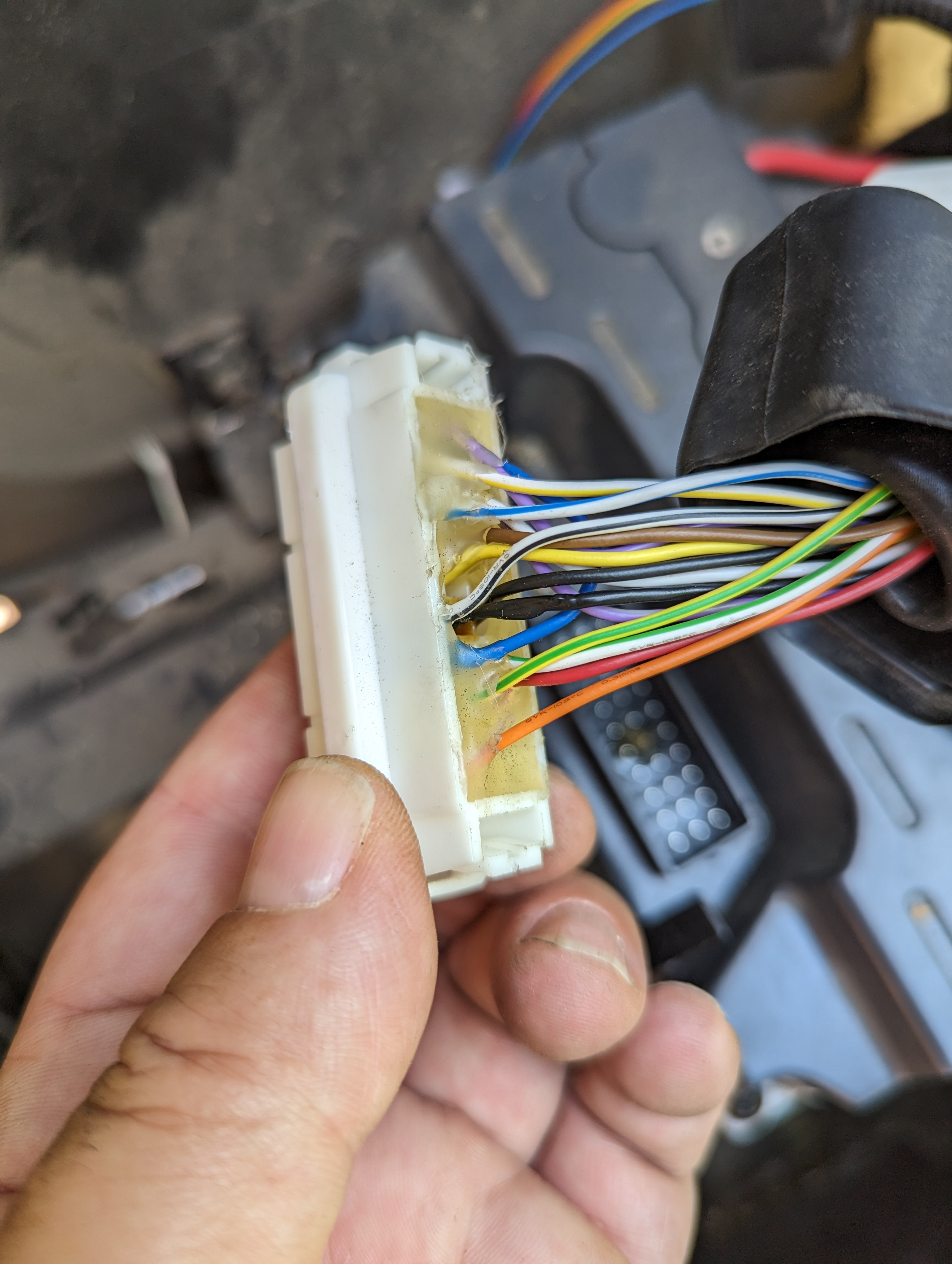 Beim Stecker sieht man, das die Vergussmasse durch einen Übergangswiderstand bzw. zuviel Strom geschmolzen ist.