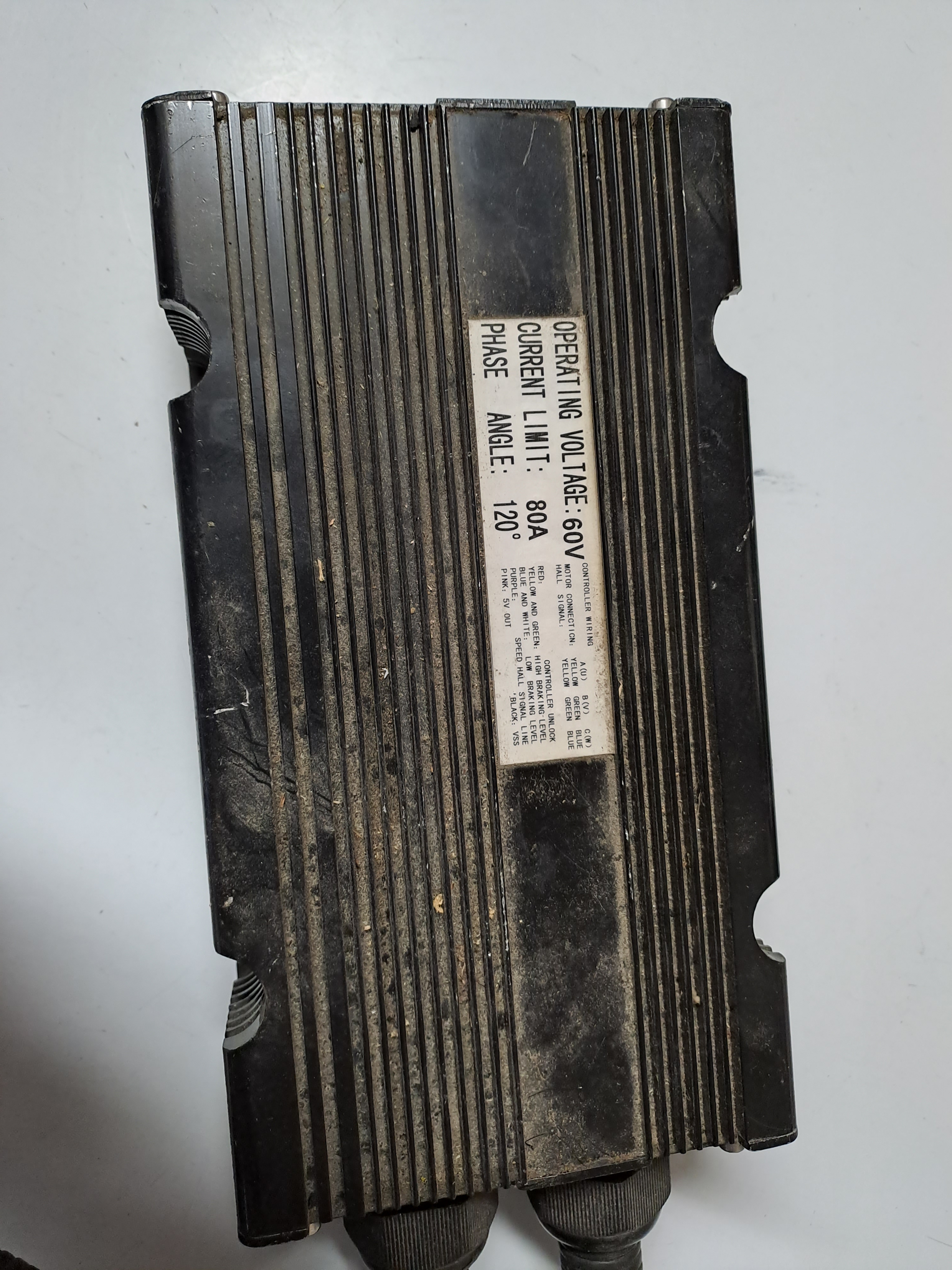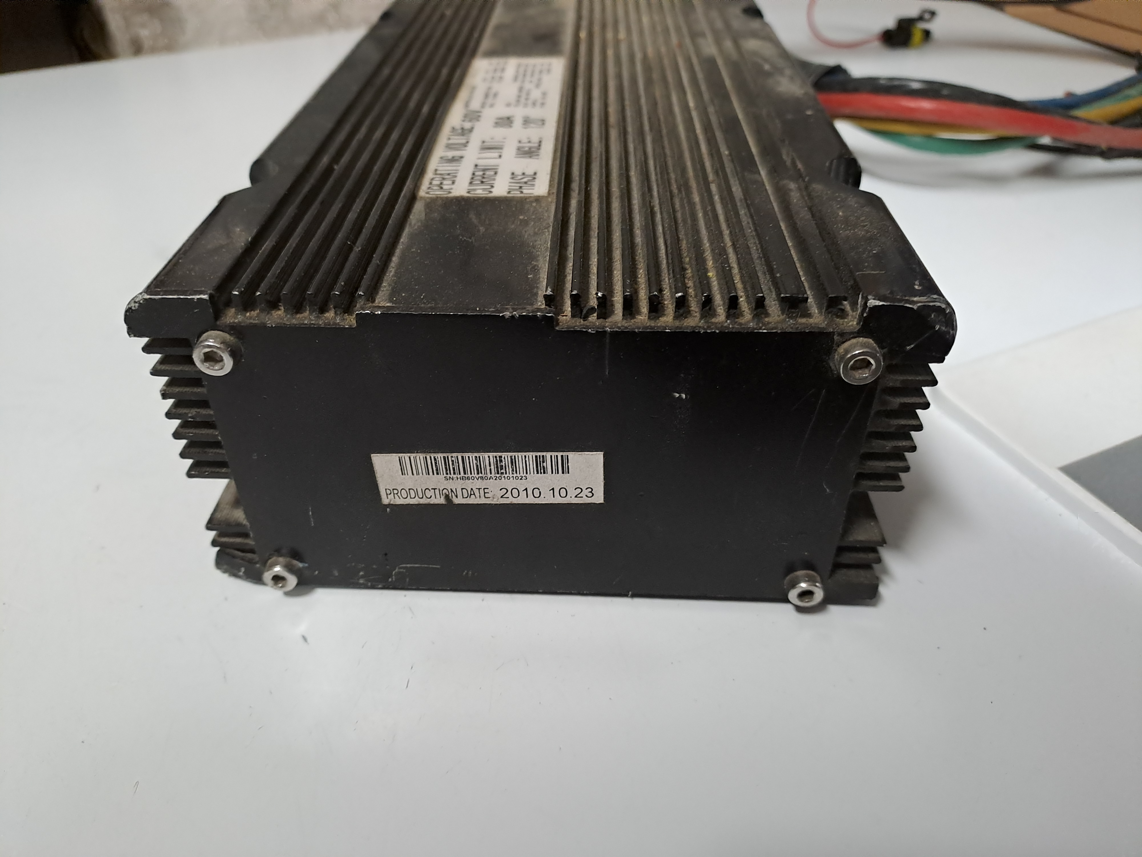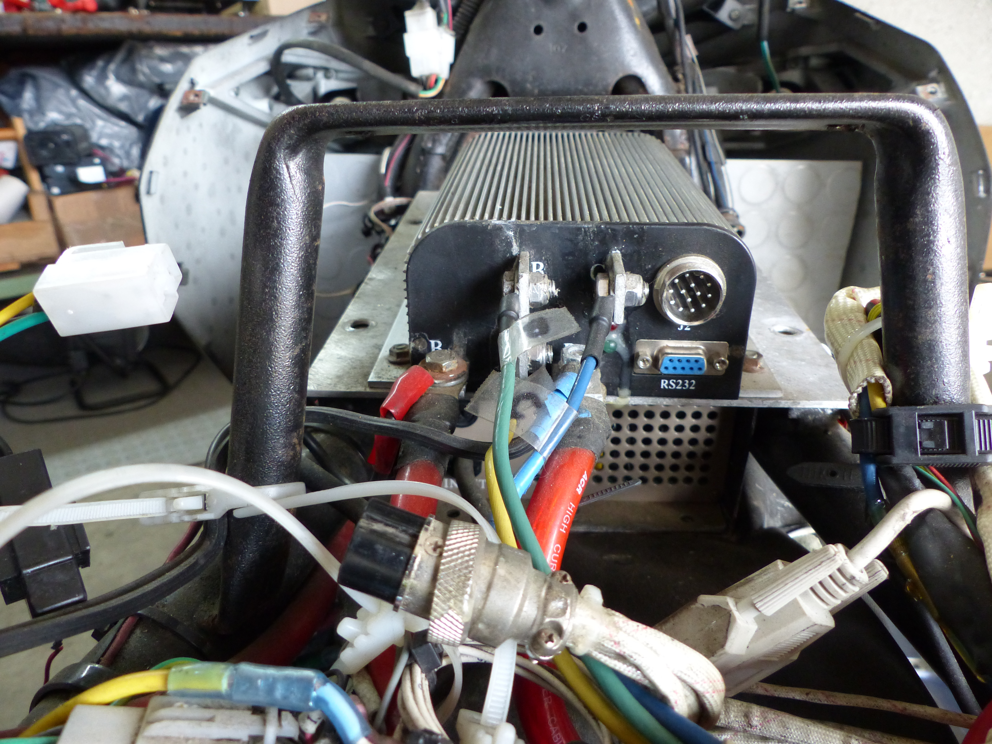 So sieht ein programmierbarer Kelly rechteck-Controller von hinten aus. Der anfahrschwache Originale vom e-Sprit Fury hatte links oben nochmals einen kleineren Rundstecker (CAN-Anschluss, der garnicht verwendet wurde...), der hier war ein stärkerer Bruder ohne CAN, der gerade mal 50€ mehr gekostet hat als der Anfahrschwache, so dass ich nie verstehen werde, wie e-sprit damals auf die Idee kam, den zu schwachen mit CAN Anschluss zu nehmen statt den korrekten ohne...