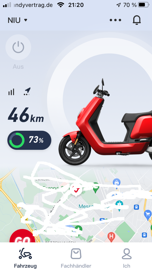 Bodo 1800 hat geschrieben: Do 22. Jun 2023, 22:18 Also, bei meinem NIU war 57 Tage lang kein GPS in der App zu sehen obwohl auf dem Display das GPS-Zeichen nicht geblinkt hatte. Aber egal, ich kenn das schon. Mit der Bezahlung ist ok. Dafür geh ich WE einmal essen und das sind dann mehr als nur 3 Jahre.