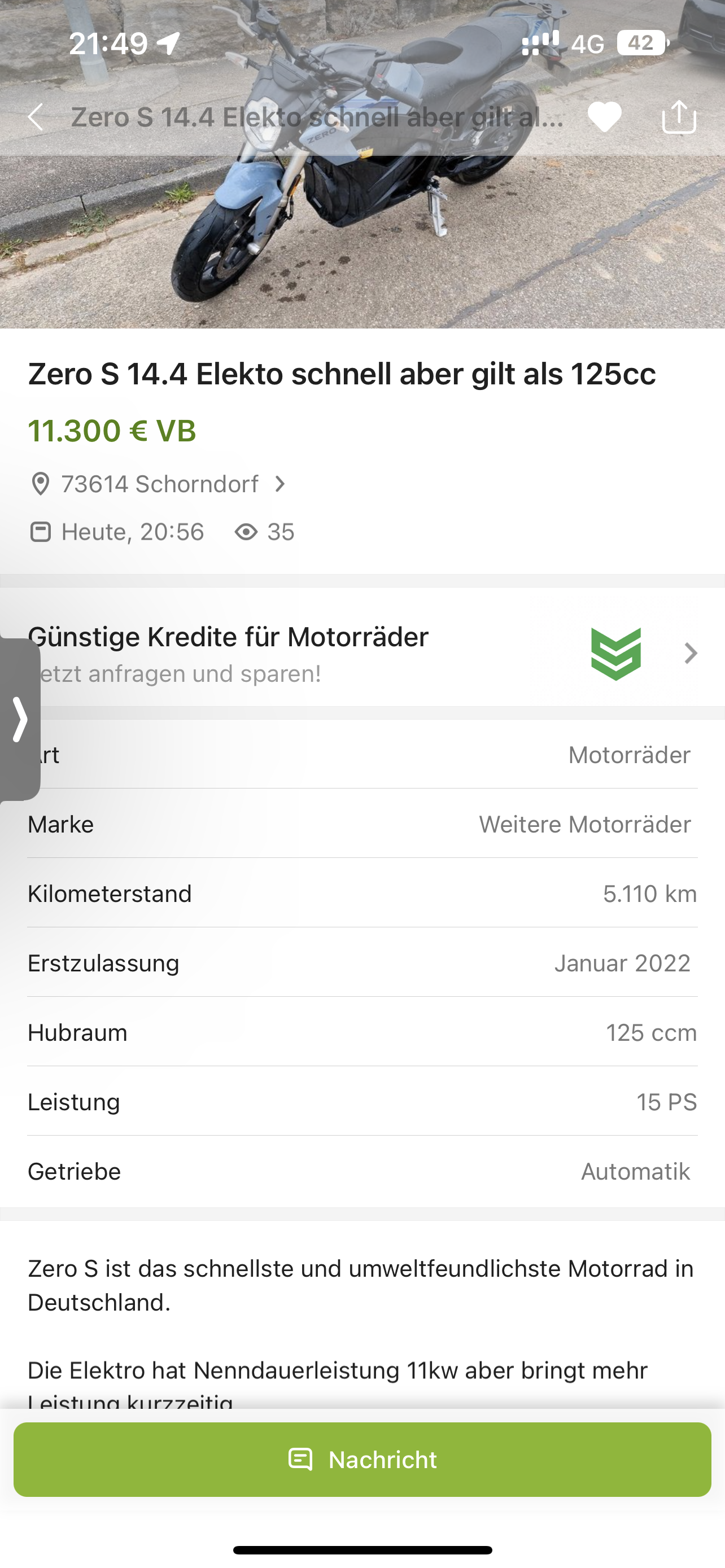 Die Zero S scheint ja im „125er“ Bereich das non Plus Ultra zu sein.