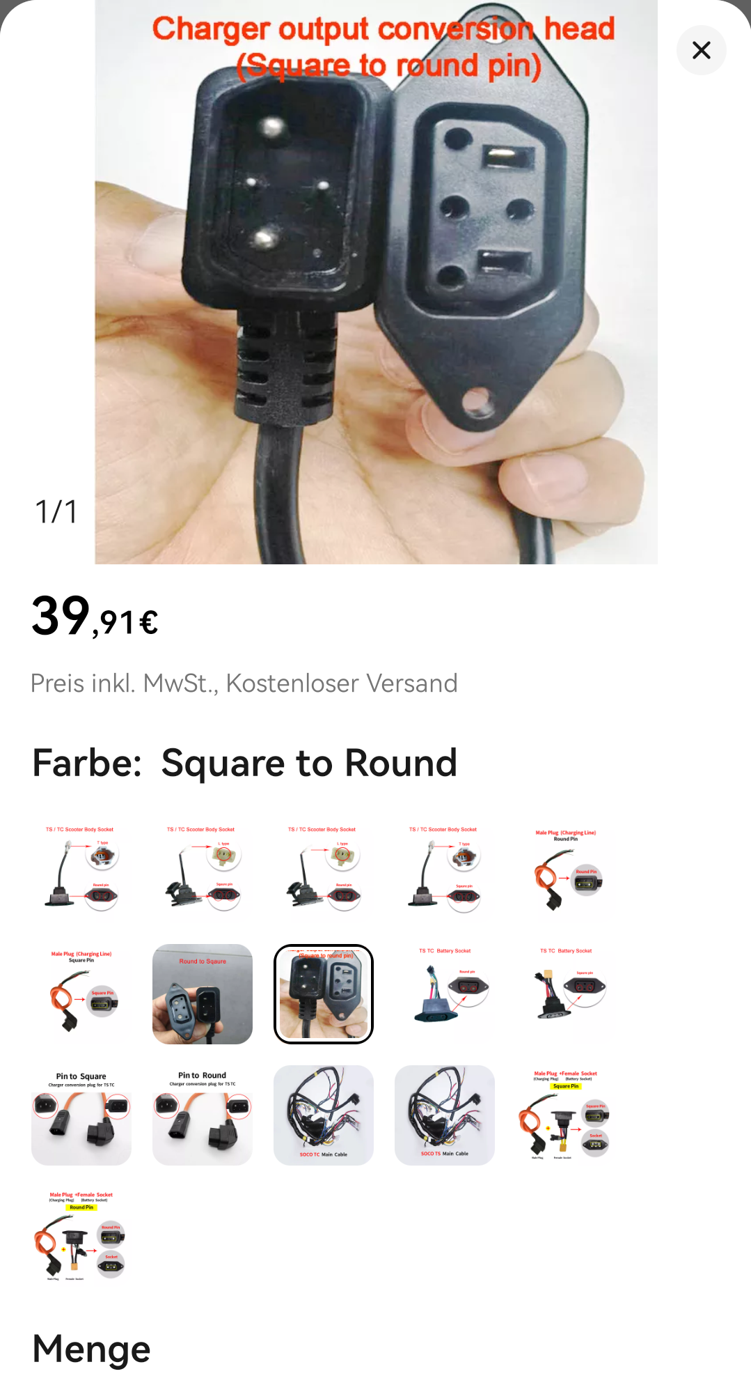 Ladebuchse ist Rund ! Gibt es ein Adapterstück dafür?