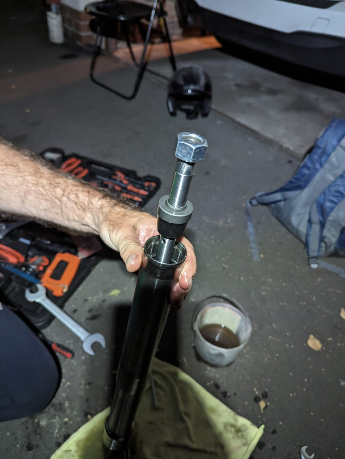 Als Öl habe ich das SAE 10w von Motul verwedet, es waren ca. 300ml pro Dämpfer drin.