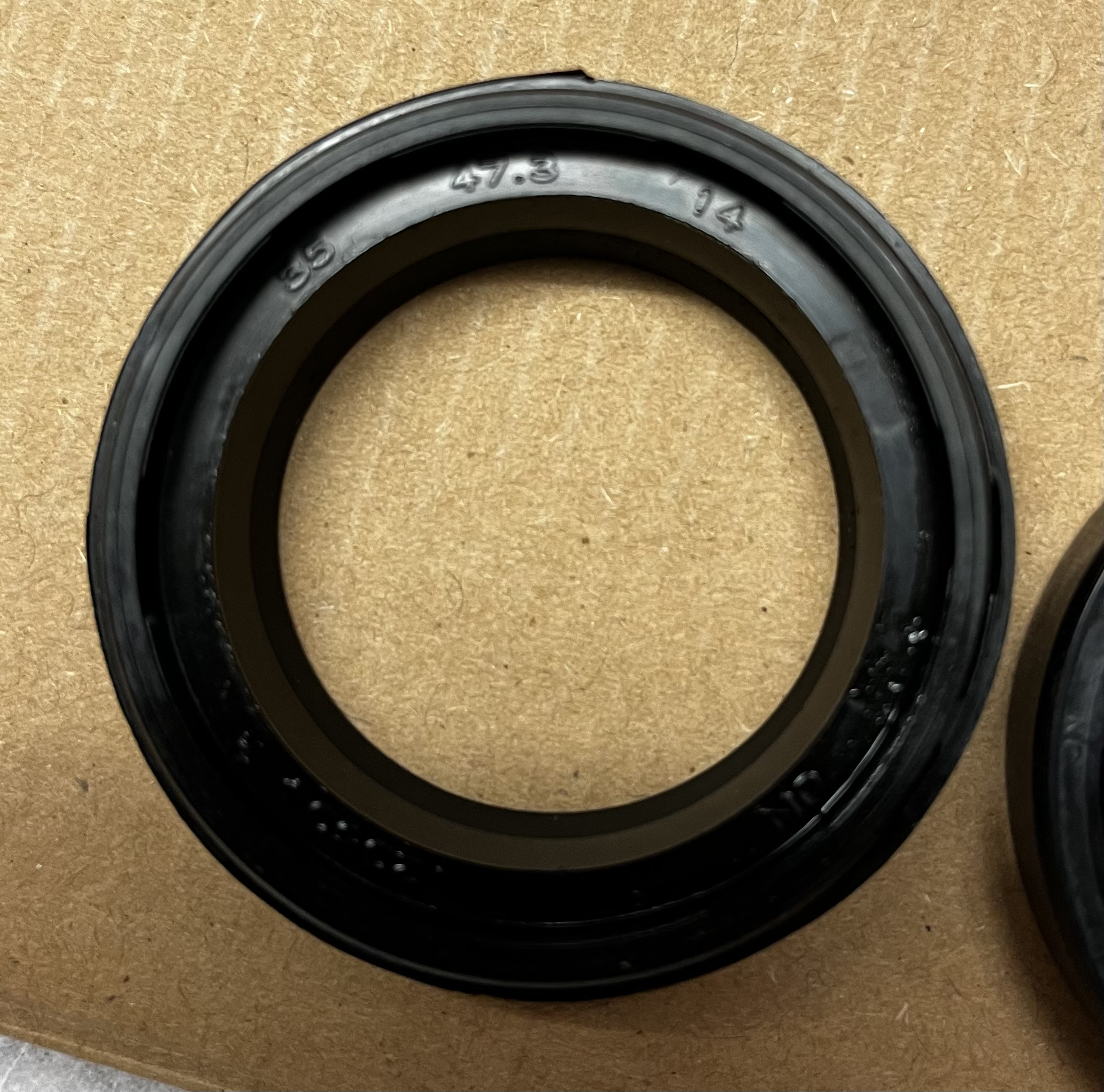 Es sind bei meiner folgende Ringe verbaut 35x48x10,5. 35x48x11 passt auch noch. Eben ein Millimeter mehr Außendurchmesser. Zum Glück hatte Louis die gestern in der Filiale vorrätig.