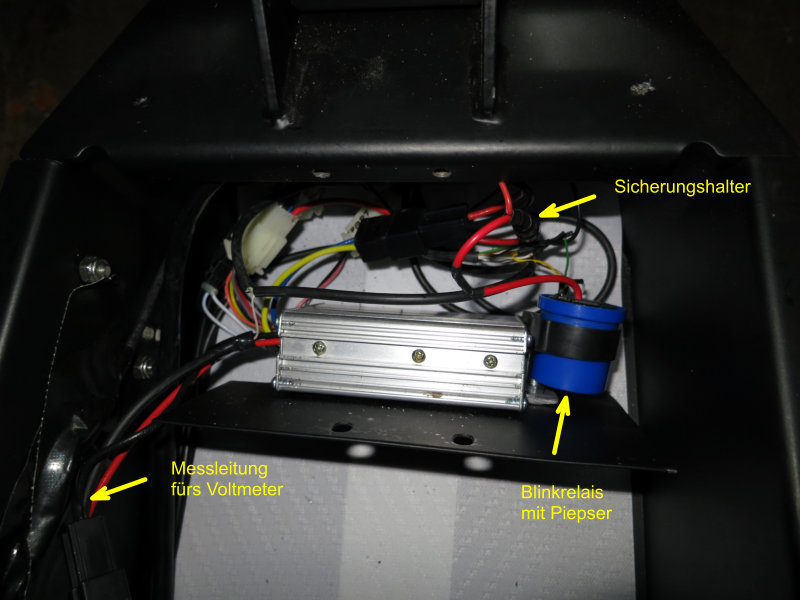 Ich habe das Blinkrelais neben dem Controller befestigt und es ist gut zu hören.