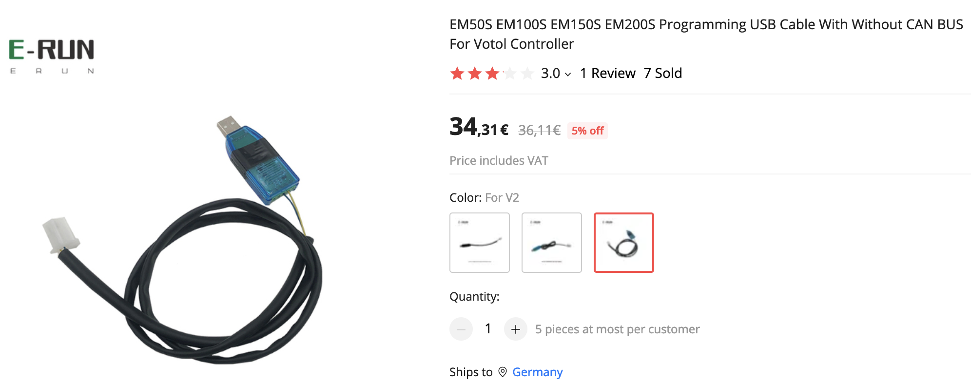 Werde morgen mit dem neuen Treiber nochmal einen Versuch starten. Meines Wissens steht das "Votol V2" beim Programmieradapter für das "/2" in der Bezeichnung EM150/2, das müsste also schon passen.