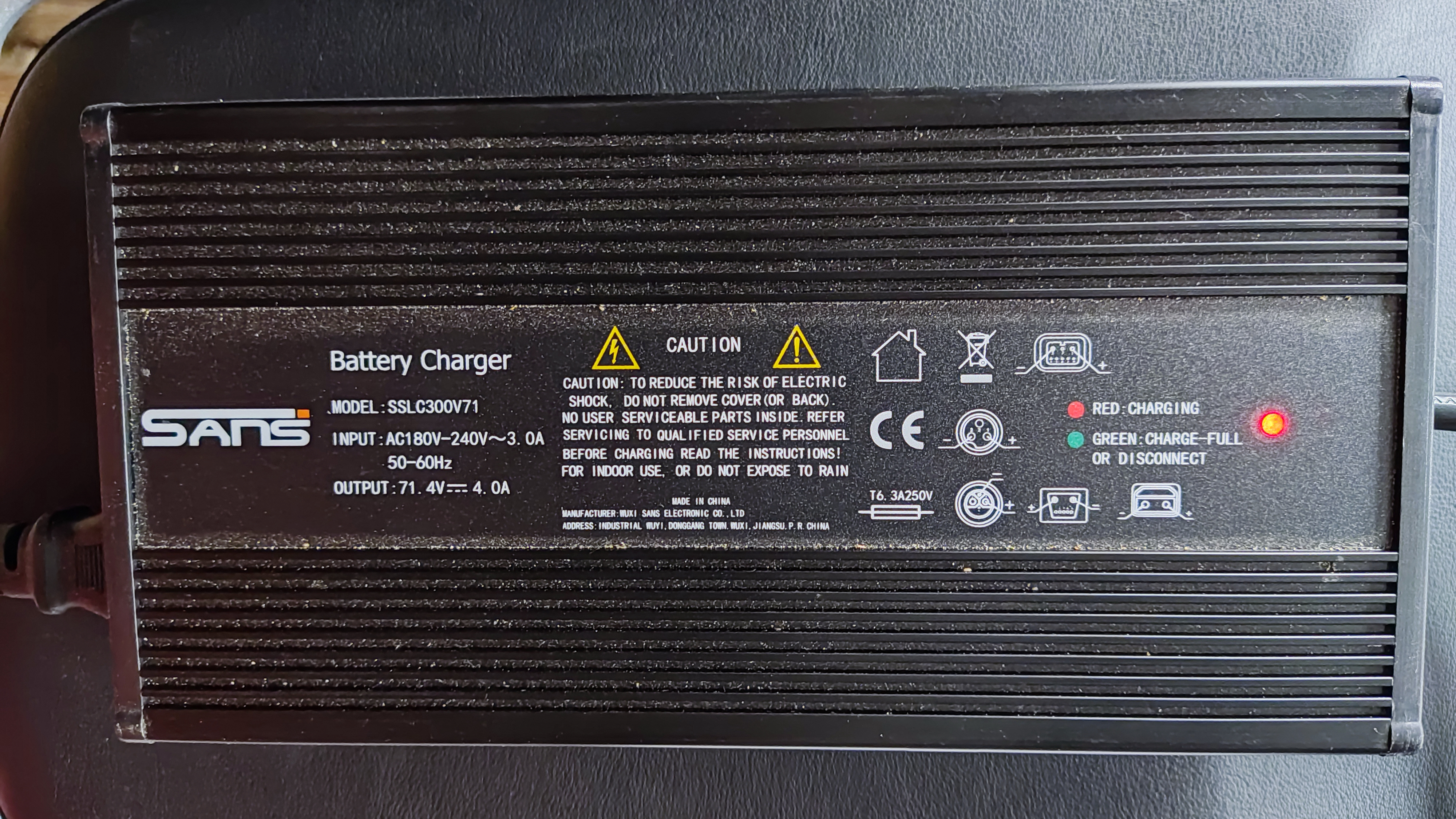 Ich habe als Ladegerät ein 60V 20A Netzteil und einen einstellbaren DC/DC Wandler für Solarspeicher der CC/CV kann (wichtig!). So habe ich nicht mehr wie früher zig Ladegeräte für die E-Kleinfahrzeuge herumliegen.