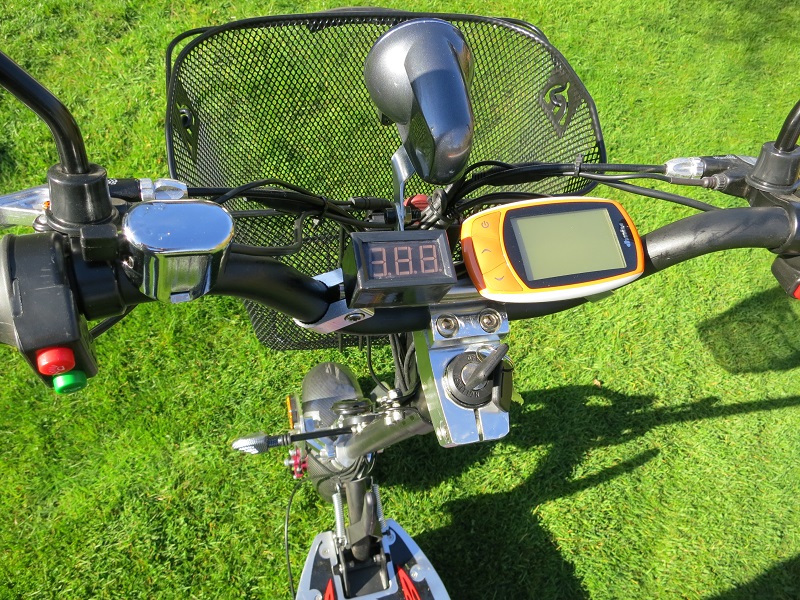 Den digitalen Tacho musste ich verlegen, um Platz für den Blinkerschalter zu schaffen. Daneben hatte ich noch Platz für ein Voltmeter, um die Akkuspannung immer im Blick zu haben.