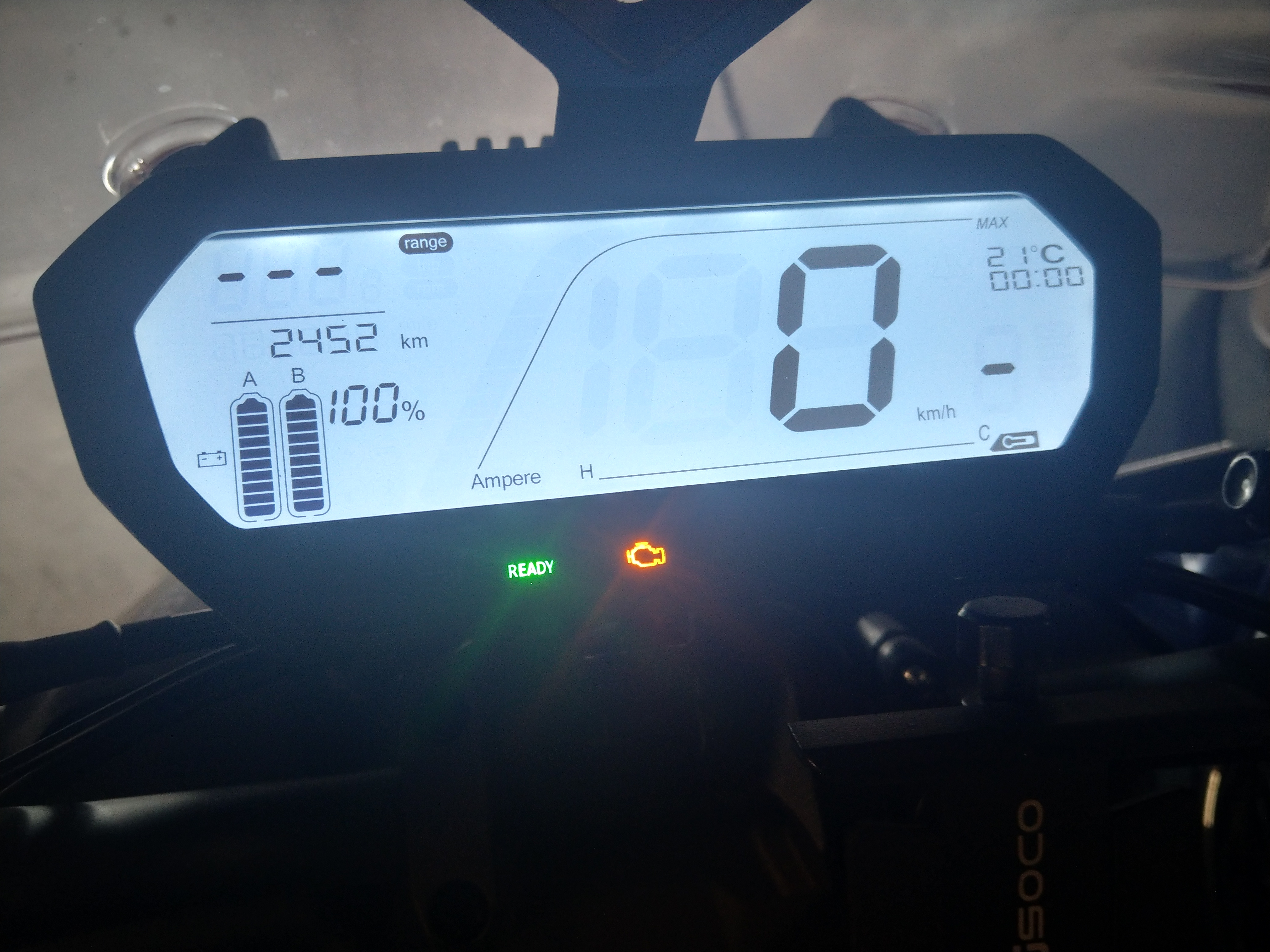 ich bin grad ziemlich ratlos. Erst kürzlich war ich zur 1.Inspektion, neuestes Update aufgespielt, sonst alles in Ordnung. Keine Probleme seither. Gestern ganz normal geladen und heute urplötzlich als ich los fahren wollte, ging nichts mehr. Der CPX lässt sich ganz normal einschalten und hochfahren, doch dann ertönt dieses charakteristische hohe Piepsen nach dem Einschalten nicht mehr wenn er startklar ist und die Motorkontrollleuchte fängt an zu blinken. Gas wird nicht angenommen, aber auch überhaupt kein Fehlercode angezeigt. Fahrstufe im Display und Reichweite wird nicht angezeigt, alles andere schon. Und die Uhr zeigt konstant 00:00 an (siehe auch Foto). Sehr seltsam. Zwar kam es schon öfter vor, dass während der Fahrt das Display dieses Verhalten zeigt und die Motorleuchte blinkt, aber er ließ sich dennoch normal fahren und nach Neustart war dann auch wieder alles normal. Jetzt geht nichts mehr, auch nicht nach Aus/Einschalten des Hauptschalter.