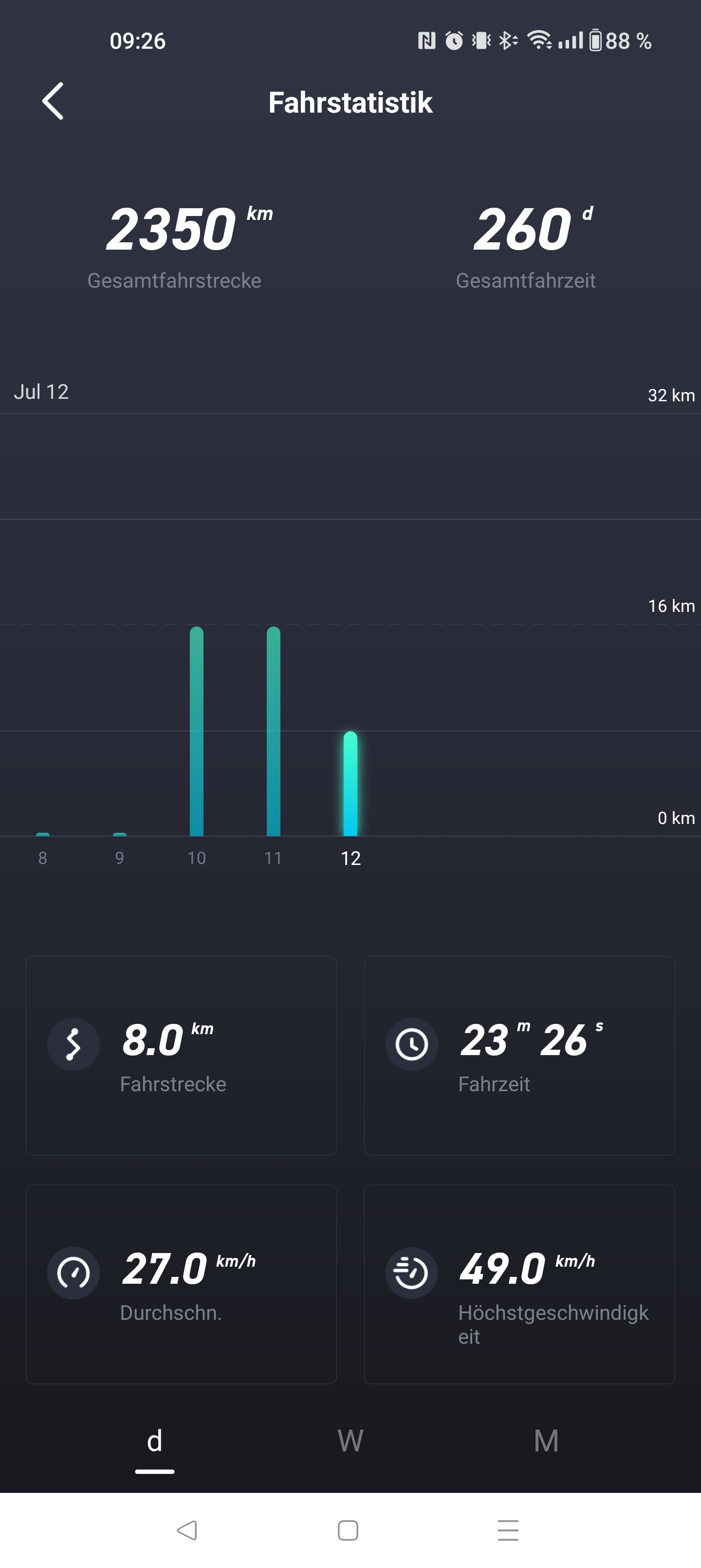 Bei einer Reichweite von 60 km verbrauche ich 2-3 % mehr als am Anfang.