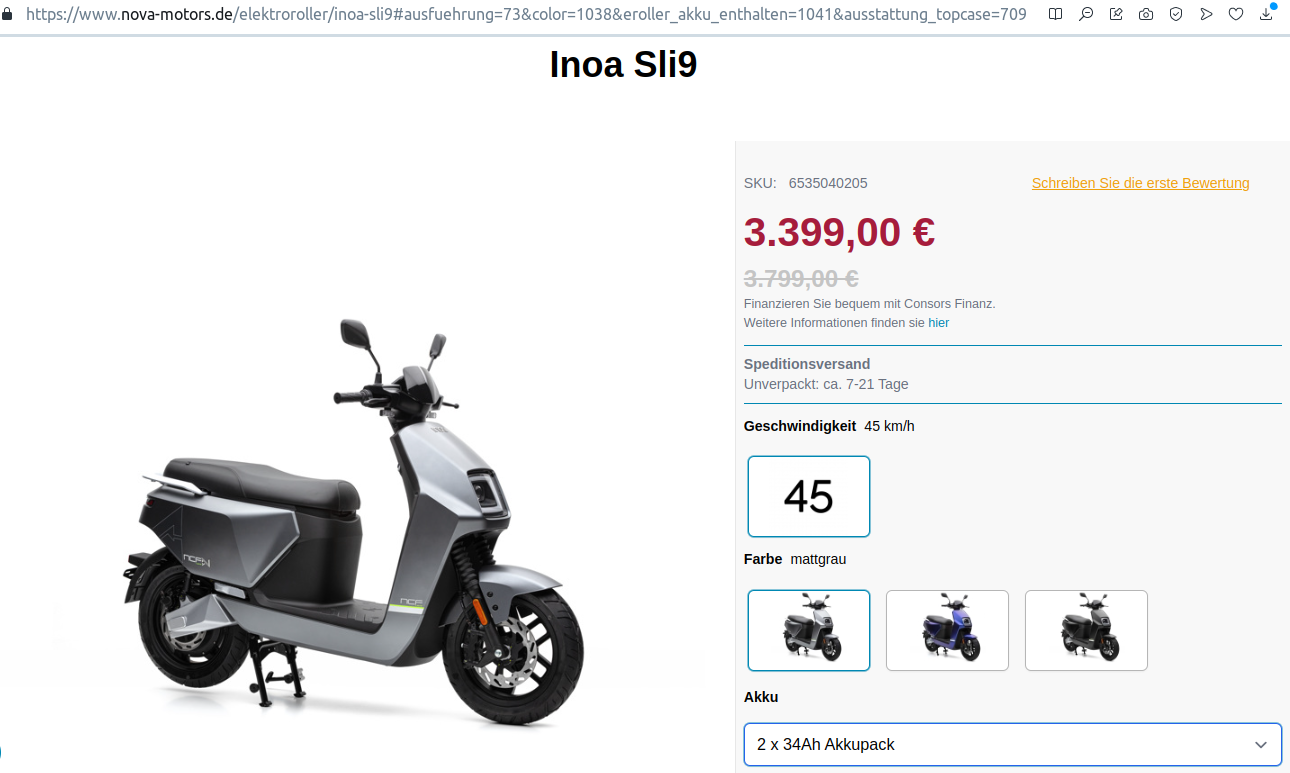 Ja ich hatte mich auch gefragt, warum es für den Inoa SLi9 keine Ersatzteile im Onlineshop gibt. Bekam heute eine Antwort von Nova Motors. Der Sli9 ist eines der neuesten Modelle und die Teile werden erst nach und nach in den Onlineshop gestellt.