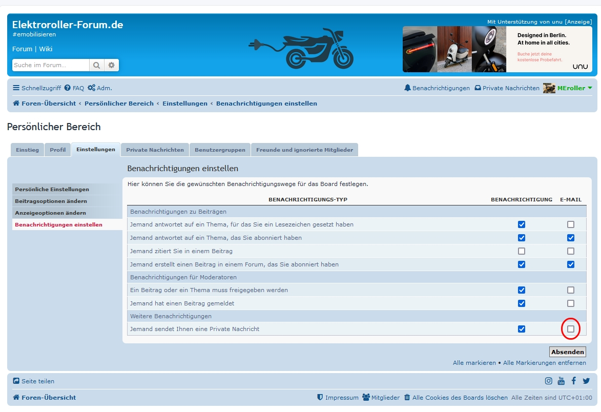 Hatte ich natürlich gecheckt, bevor ich das Problem mit der eMail-Benachrichtigung gepostet hatteMEroller hat geschrieben: Do 21. Sep 2023, 00:00 Bitte in den Persönlichen Gehen (rechts oben) und die gewünschten Benachrichtigungen wieder einstellen. Hier z.B. das Kästechen für die Email-Benachrichtigung bei neuer PN: